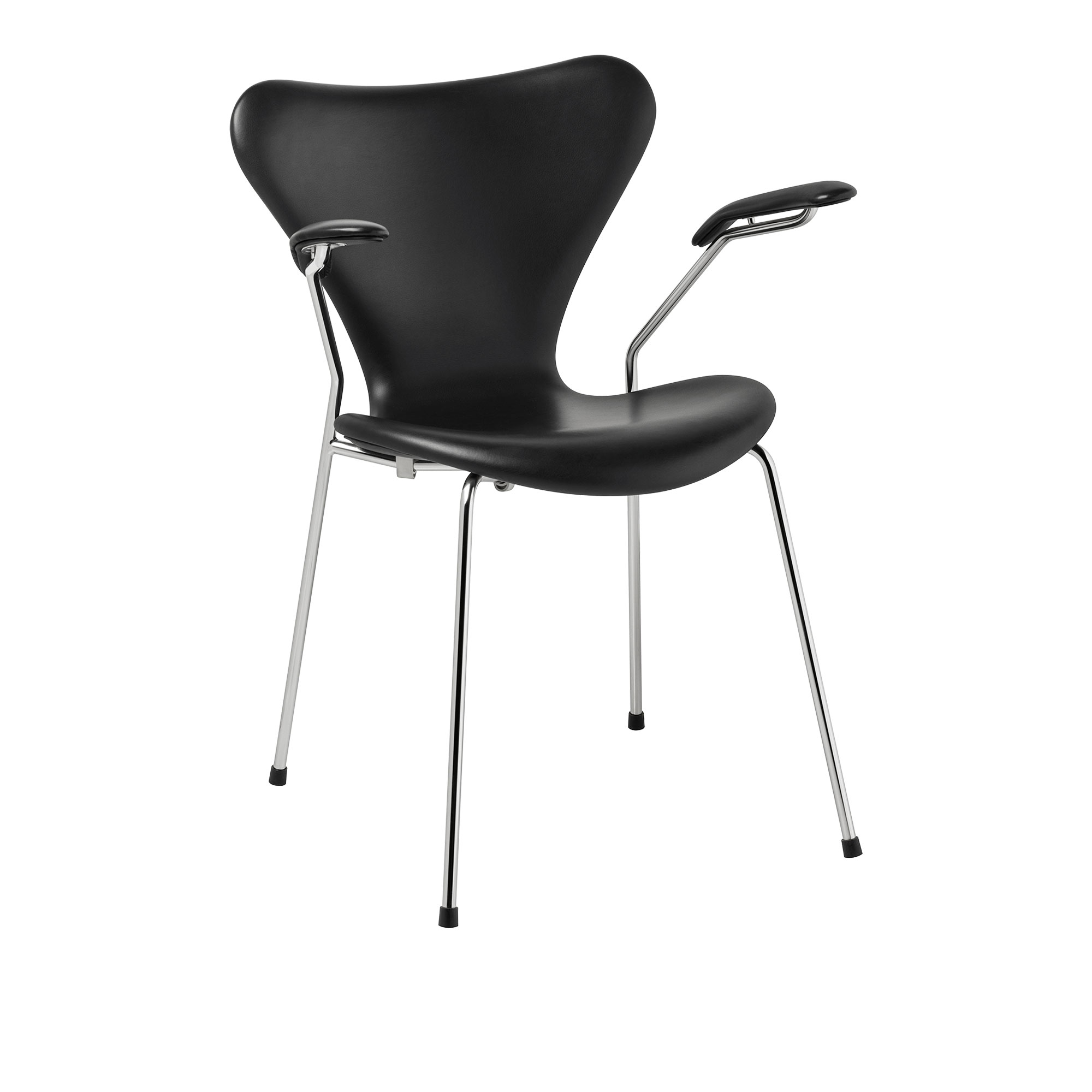 Fritz Hansen - 3207 Sjuan - Helklädd, Läder, Grace Black - Matstolar - Arne Jacobsen - Svart - Metall/Trä
