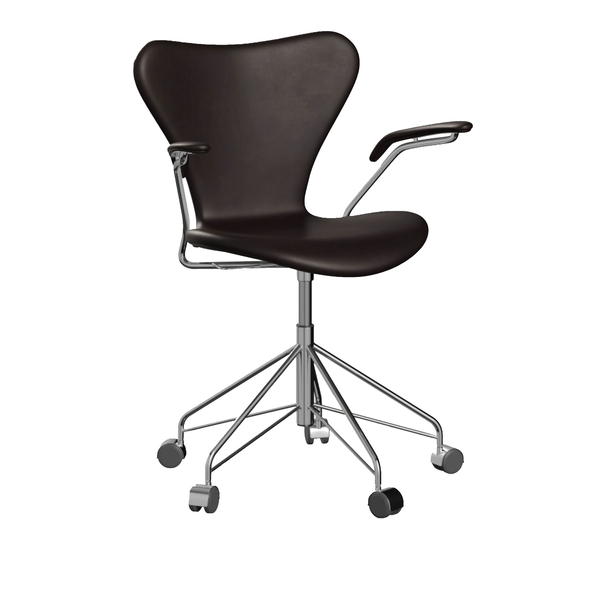 Fritz Hansen - 3217 Sjuan - Helklädd, Läder, Grace Dark Brown - Kontorsstolar - Arne Jacobsen - Brun