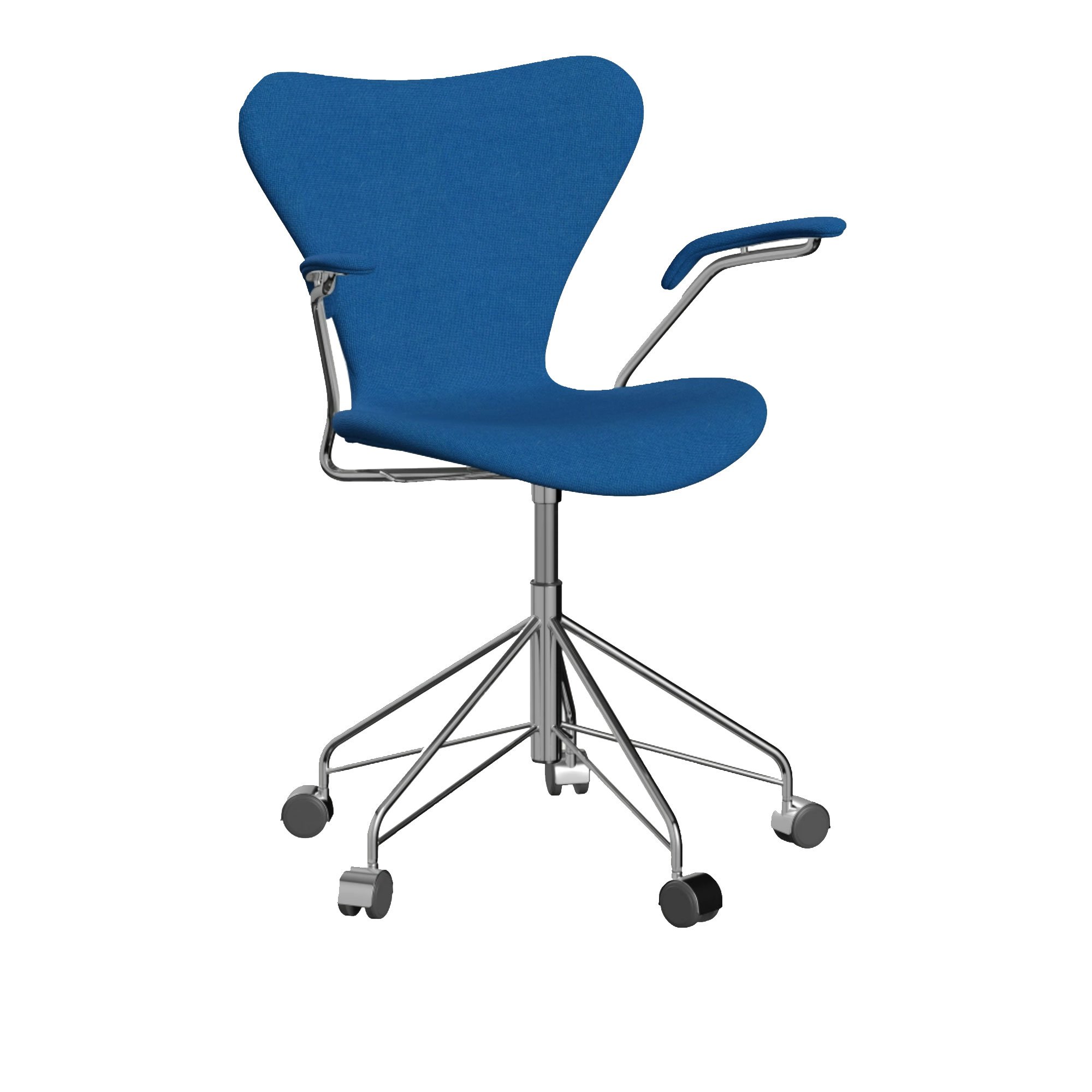 Fritz Hansen - 3217 Sjuan - Helklädd, Tyg, Hallingdal 723 - Kontorsstolar - Arne Jacobsen - Blå