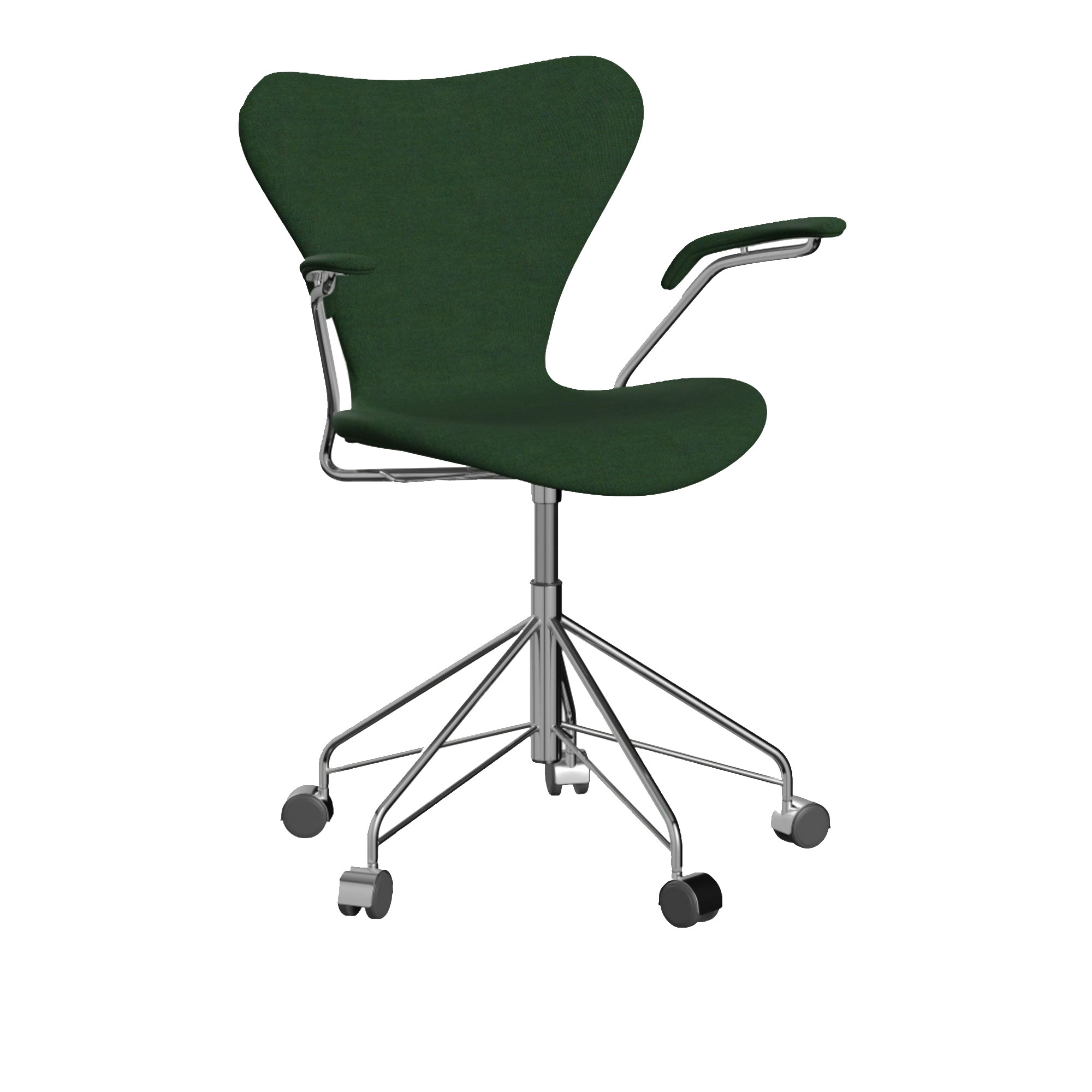 Fritz Hansen - 3217 Sjuan - Helklädd, Tyg, Hallingdal 944 - Kontorsstolar - Arne Jacobsen - Grön