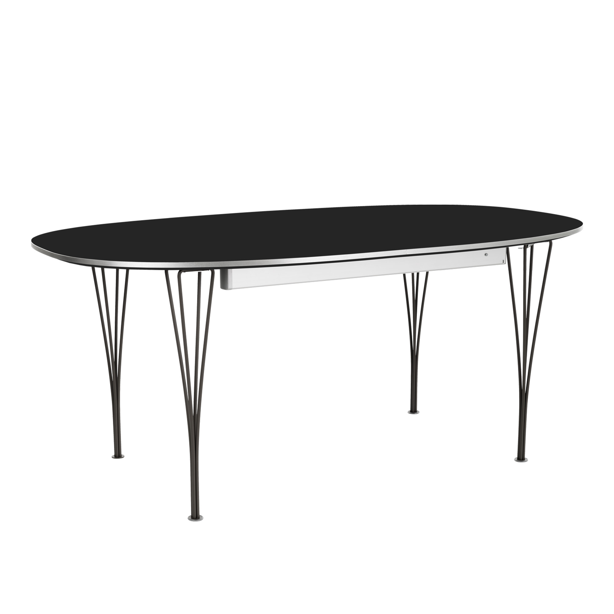 Fritz Hansen - B620 Superellips Utdragbart, Laminat, Svart, Svart pulverlack - Matbord - Arne Jacobsen,Bruno Mathsson,Piet Hein - Svart - Metall/Trä