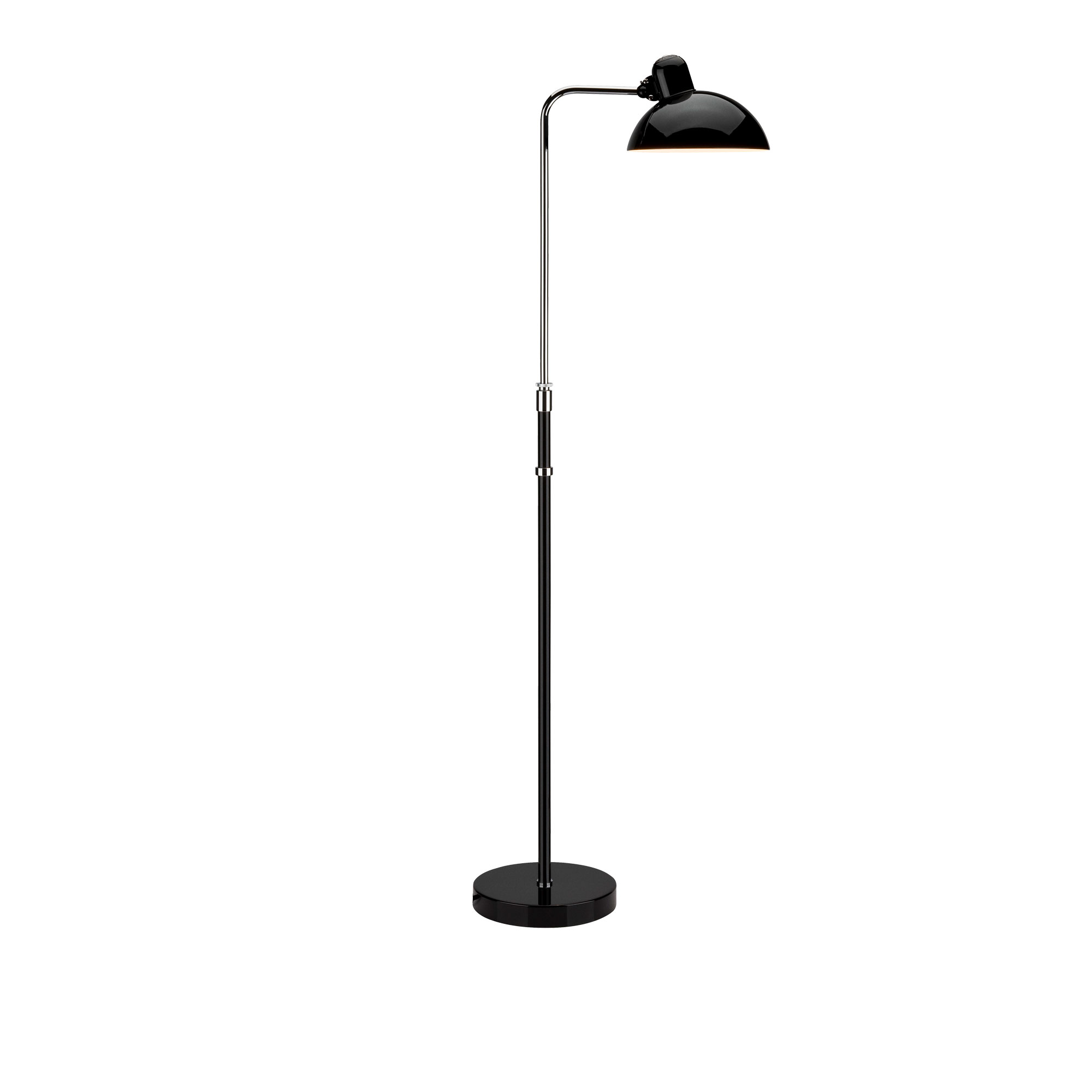 Kaiser Idell 6580-F, golvlampa från Fritz Hansen, formgiven av Christian Dell. Denna smäckra golvlampa finns i flera olika utföranden, alla lackerad samt polerade för hand. Lampans höjd är justerbar liksom vinkeln på dess skärm. Med sin unika kvalitet, precisionsteknik och hantverk utstrålar Kaiser Idell™ originalitet, en enastående skulpturell kvalitet och ren design när den är som bäst. Kaiser Idell är Bauhaus-design i original, skapad av silversmeden Christian Dell. Utgångspunkten för serien är den världspatenterade vridningen och den karakteristiska kupolformade skärmen med stämpeln ""ORIGINAL KAISER-Idell"". Christian Dell var en tysk silversmed och formgivare. På 20-talet var han arbetsledare i plåtverkstaden på Bauhaus i Weimar där han låg bakom en mycket innovativ och banbrytande stil av design. Från och med 1926 skissade Dell lampor, ofta för fabriken Gebr. Kaiser & Co. Den första katalogen lanserades 1936 där bordslampan modell 6631 Luxus dök upp för första gången. Denna lampa kom senare att bli ankaret i Kaiser Idell™-serien. Då, liksom idag är den symbolen för den ädla germanska designen, teknisk perfektion i samklang med utsökta materialval.