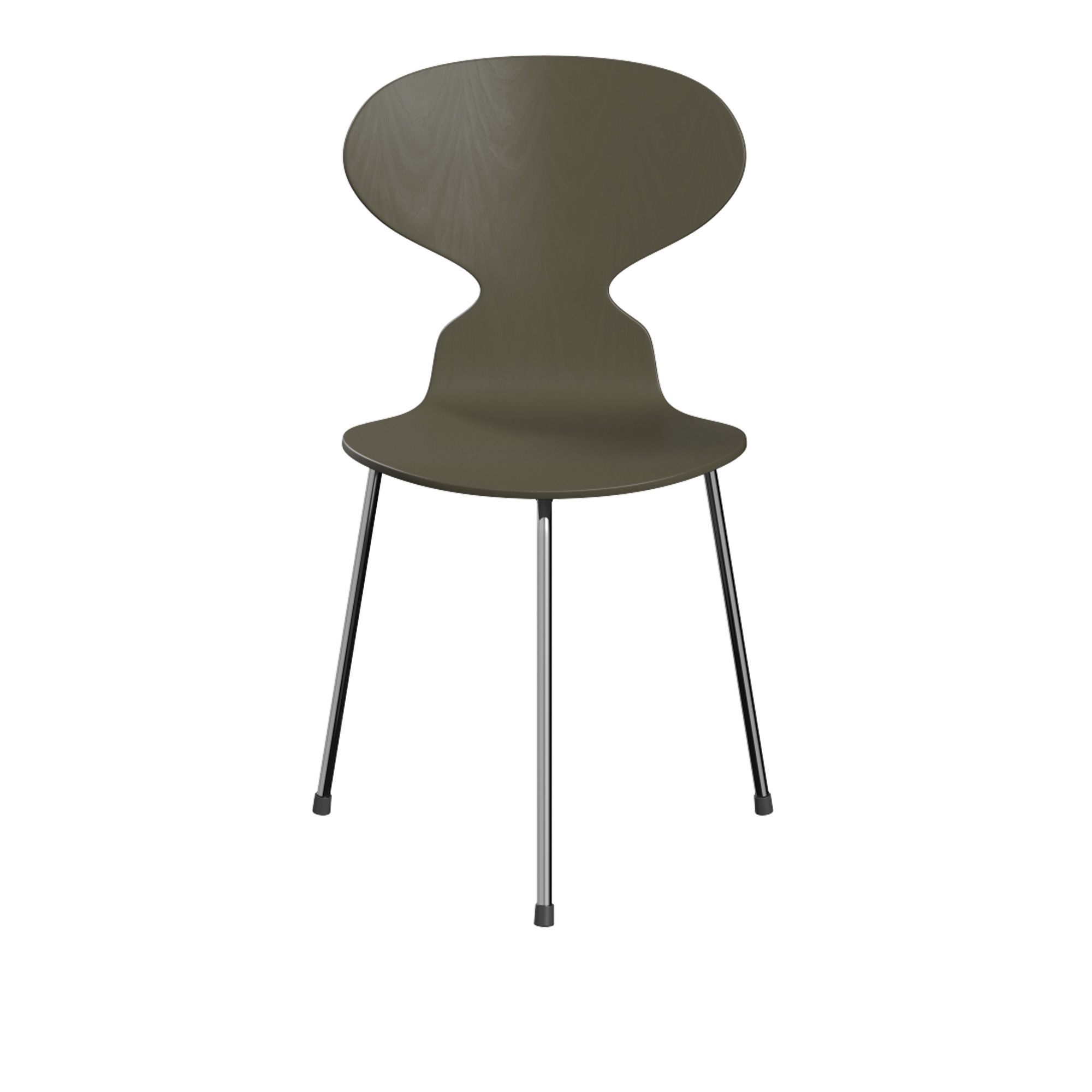 Fritz Hansen - Myran 3100 färgad askfanér stålstativ krom olive green - Matstolar - Arne Jacobsen - Grön - Metall/Trä