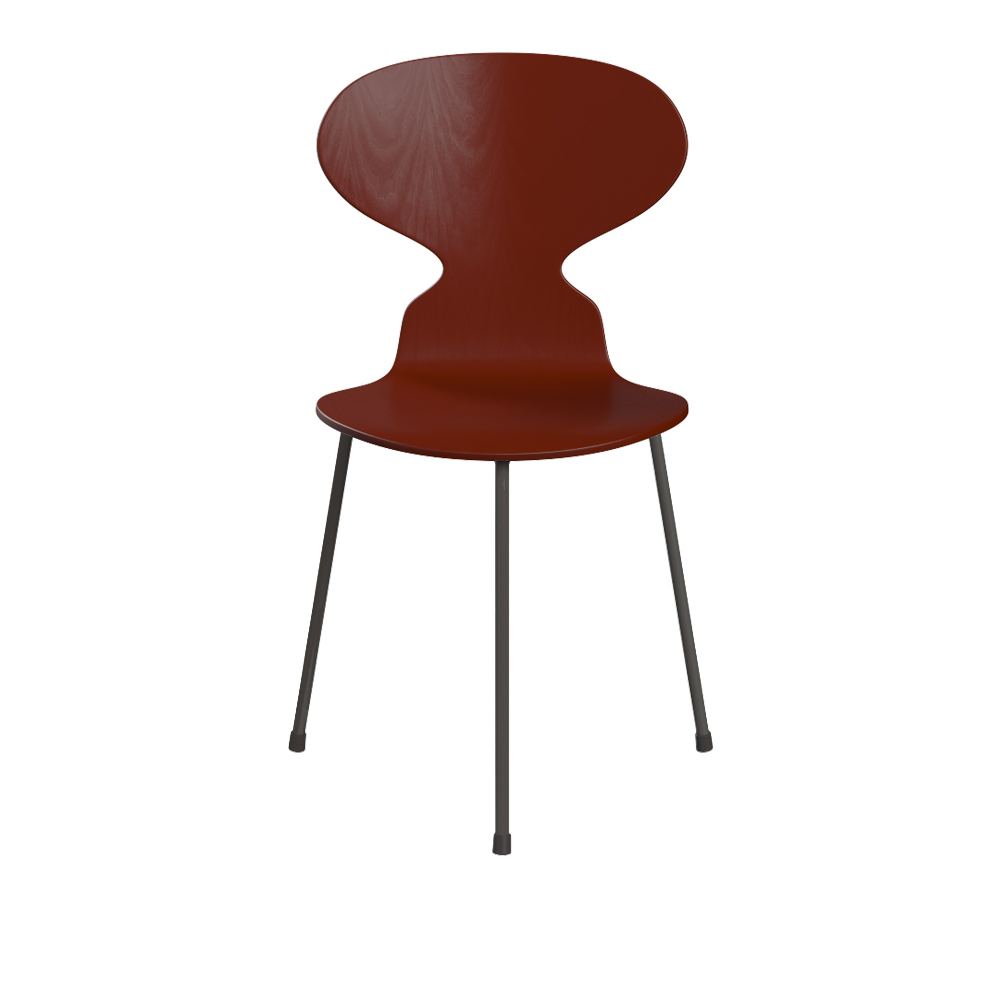 Fritz Hansen - Myran 3100 färgad askfanér stålstativ varm grafit venetian red - Matstolar - Arne Jacobsen - Röd - Metall/Trä