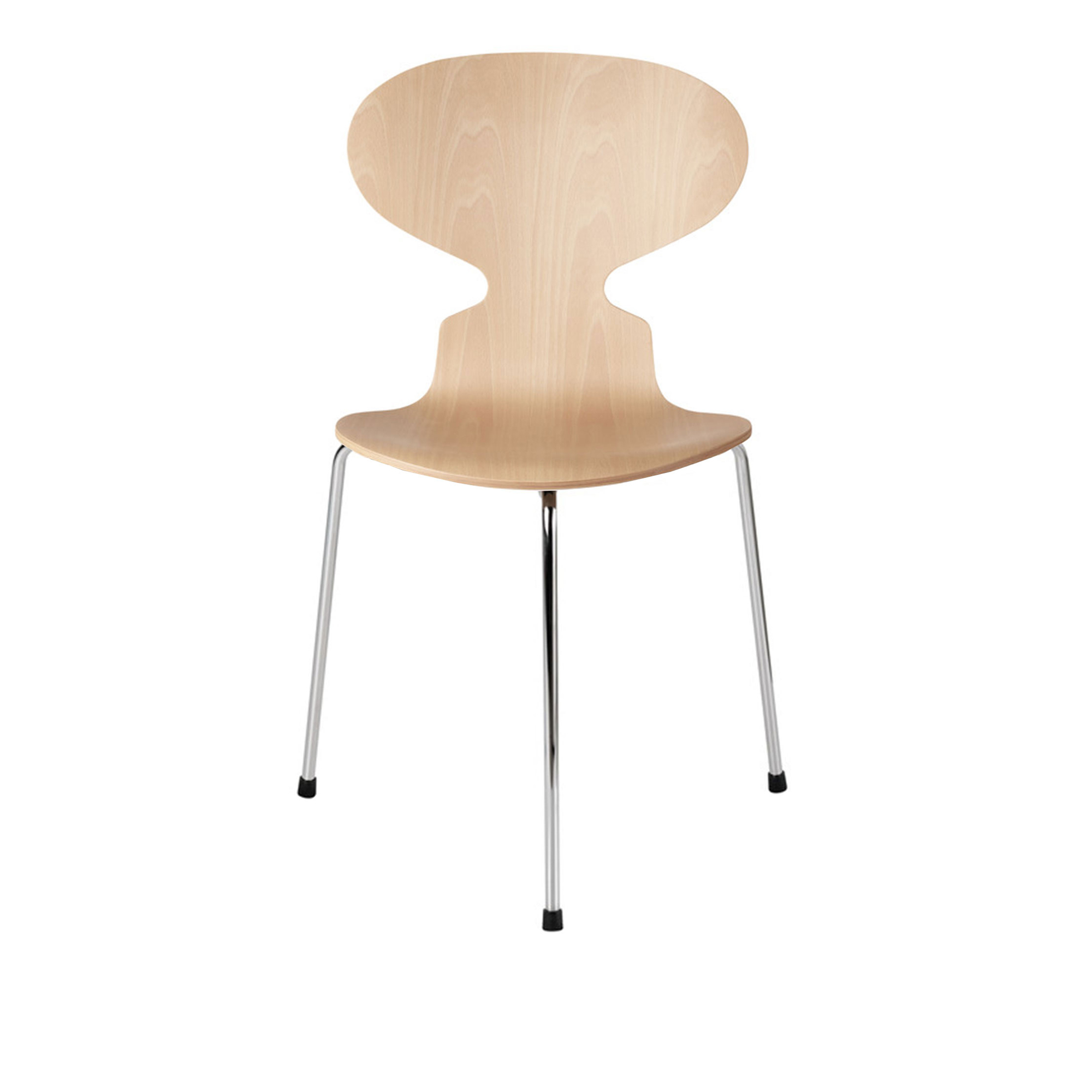 Fritz Hansen - Myran 3100 träfanér stålstativ krom bokfanér - Matstolar - Arne Jacobsen - Träfärgad - Metall/Trä