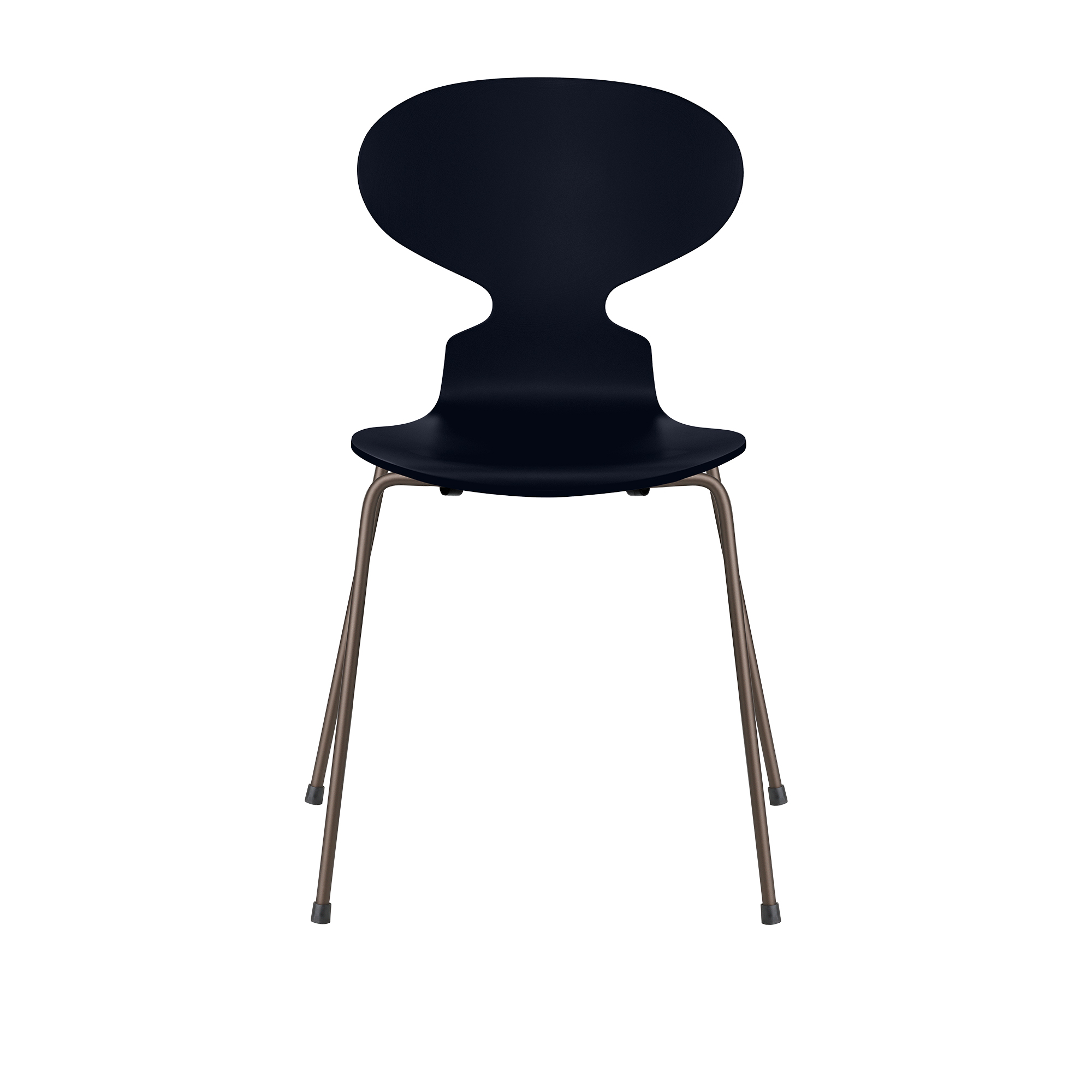 Fritz Hansen - Myran 3101 lackad bokfanér stålstativ brun brons midnight blue - Matstolar - Arne Jacobsen - Blå - Metall/Trä