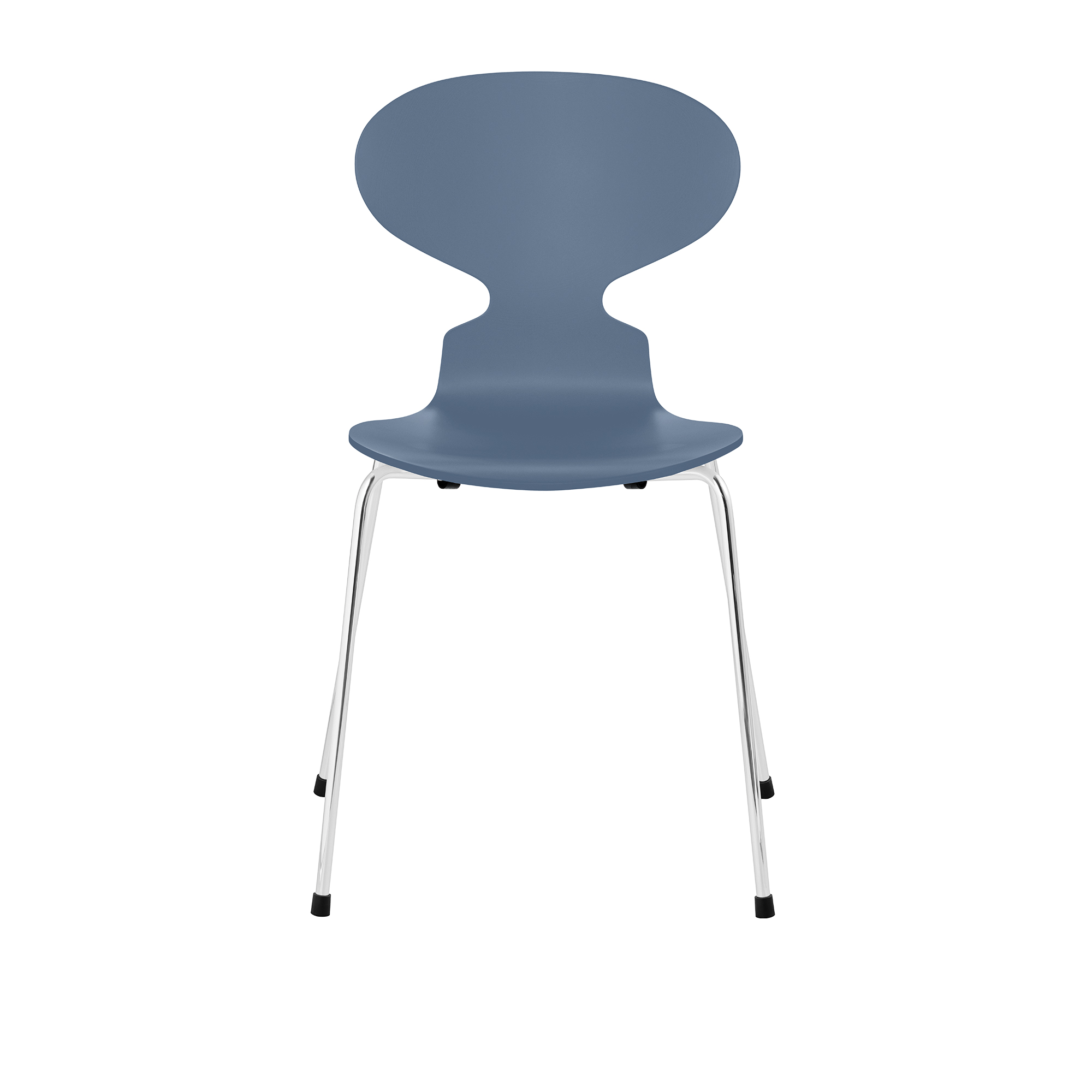 Fritz Hansen - Myran 3101 lackad bokfanér stålstativ krom dusk blue - Matstolar - Arne Jacobsen - Blå - Metall/Trä