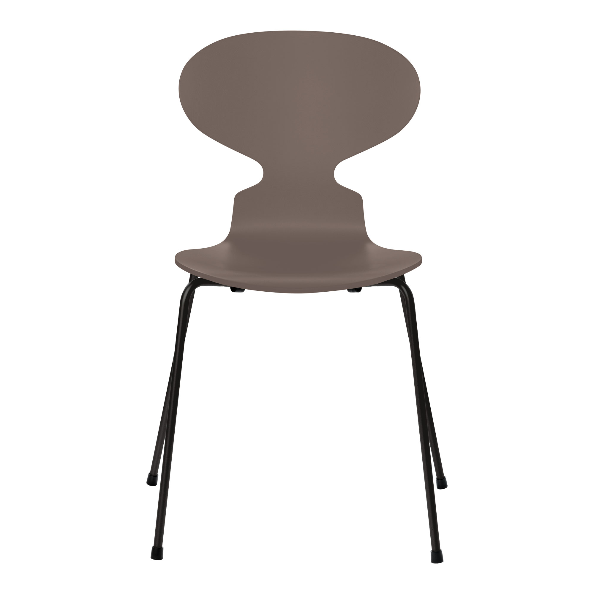 Fritz Hansen - Myran 3101 lackad bokfanér stålstativ svart deep clay - Matstolar - Arne Jacobsen - Grå - Metall/Trä