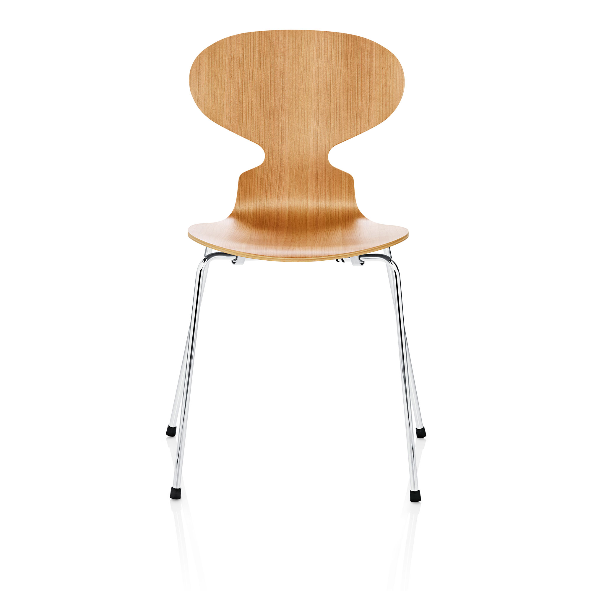 Trots sin minimalistiska och strikta form är Myran en mycket bekväm stol att sitta i, även längre stunder. Stolen är stapelbar och i trä som sitter på ett stålunderrede med tre eller fyra ben.