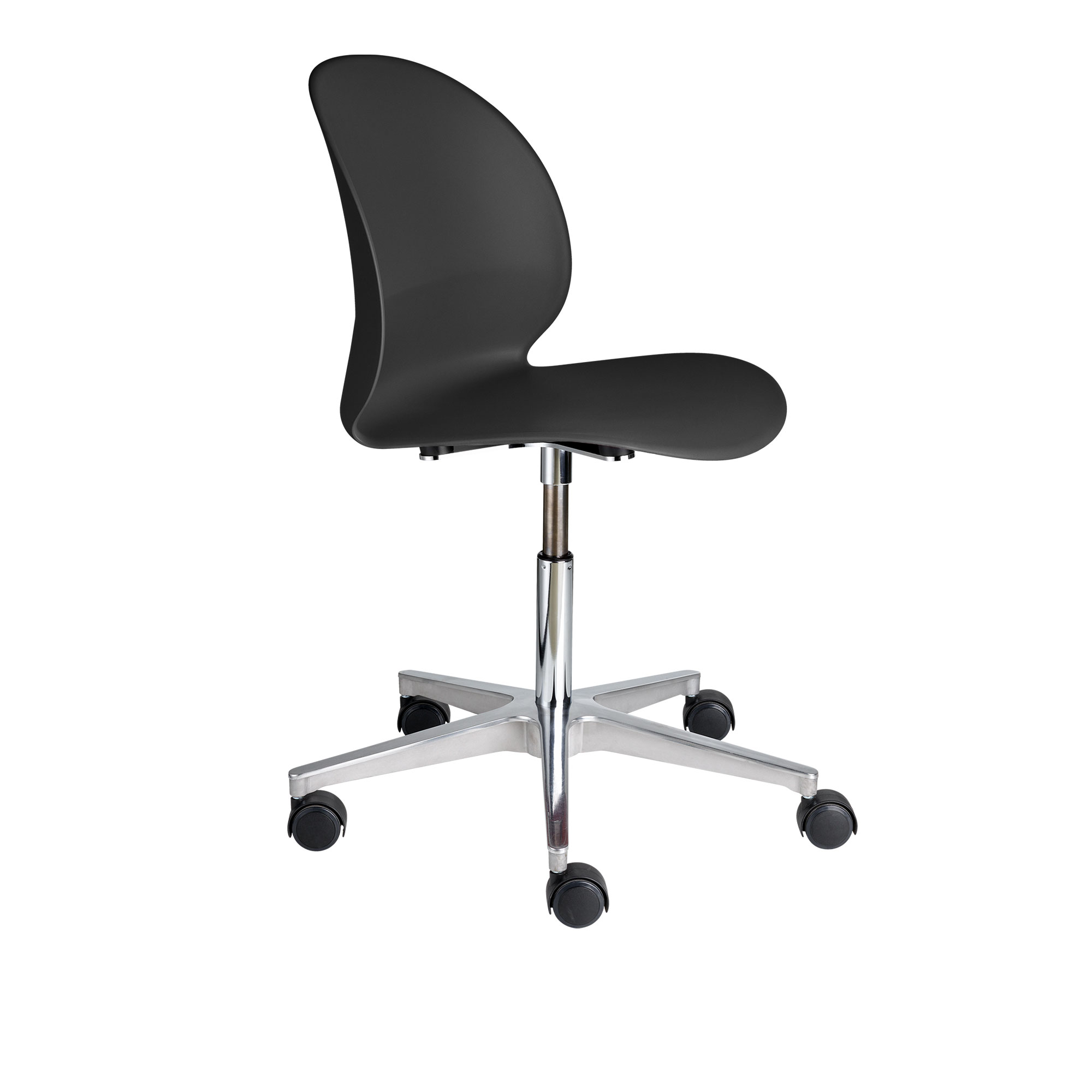 NO2™ Recycle är en serie stolar från Fritz Hansen, formgiven av den japanska designstudion nendo. Den eleganta stolens sits är tillverkad i återvunnen plast från centraleuropeiska hushåll i så kallad ""circular plastic"" – den är gjord av återvunnen plast och kan återvinnas igen om så önskas. Smakfull och elegant formgivning gör att denna stol vackert smälter in i olika miljöer. Denna modell är höj- och sänkbar och passar därför utmärkt som arbetsstol i exempelvis kontorsmiljöer. Finns i olika utföranden och NO2™-serien omfattar en rad olika underreden och varianter.