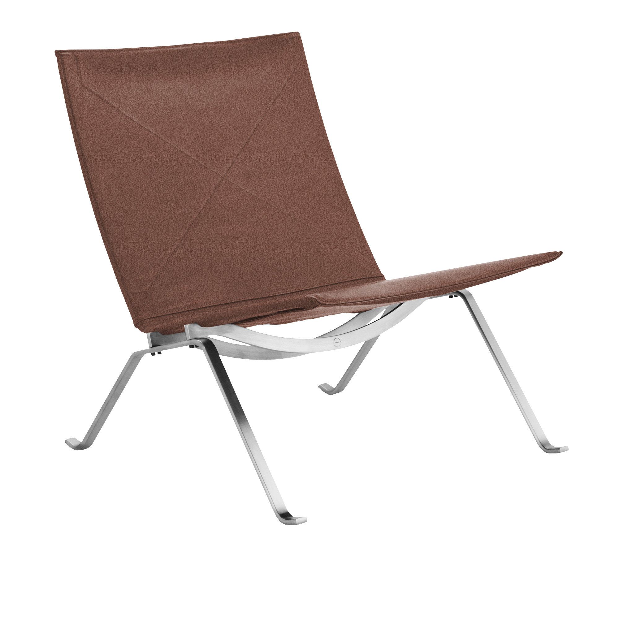 Den diskreta och eleganta fåtöljen PK22™ symboliserar Poul Kjærholms sökande efter den ideala formen och industriella dimensionen, som alltid är närvarande i hans arbete. Profilen på ramens struktur påminner om hans examensarbete, ""Element Chair"" (PK25™), från School of Applied Arts i Köpenhamn. PK22™ blev en omedelbar, kommersiell framgång när den kom år 1956. Den vart prisbelönad under Grand Prix på Triennale i Milano, världens främsta designmässa året efter. Detta erkännande kom att bli Poul Kjærholms stora genombrott i karriären och han blev ett namn på den internationella scenen, en position han har vidhållit sedan dess. Fåtöljen finns att få i flera olika utföranden med en bas i satinborstat, rostfritt stål.