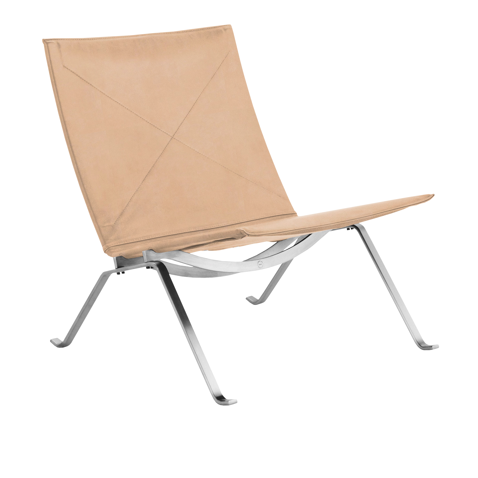 Den diskreta och eleganta fåtöljen PK22™ symboliserar Poul Kjærholms sökande efter den ideala formen och industriella dimensionen, som alltid är närvarande i hans arbete. Profilen på ramens struktur påminner om hans examensarbete, ""Element Chair"" (PK25™), från School of Applied Arts i Köpenhamn. PK22™ blev en omedelbar, kommersiell framgång när den kom år 1956. Den vart prisbelönad under Grand Prix på Triennale i Milano, världens främsta designmässa året efter. Detta erkännande kom att bli Poul Kjærholms stora genombrott i karriären och han blev ett namn på den internationella scenen, en position han har vidhållit sedan dess. Fåtöljen finns att få i flera olika utföranden med en bas i satinborstat, rostfritt stål.