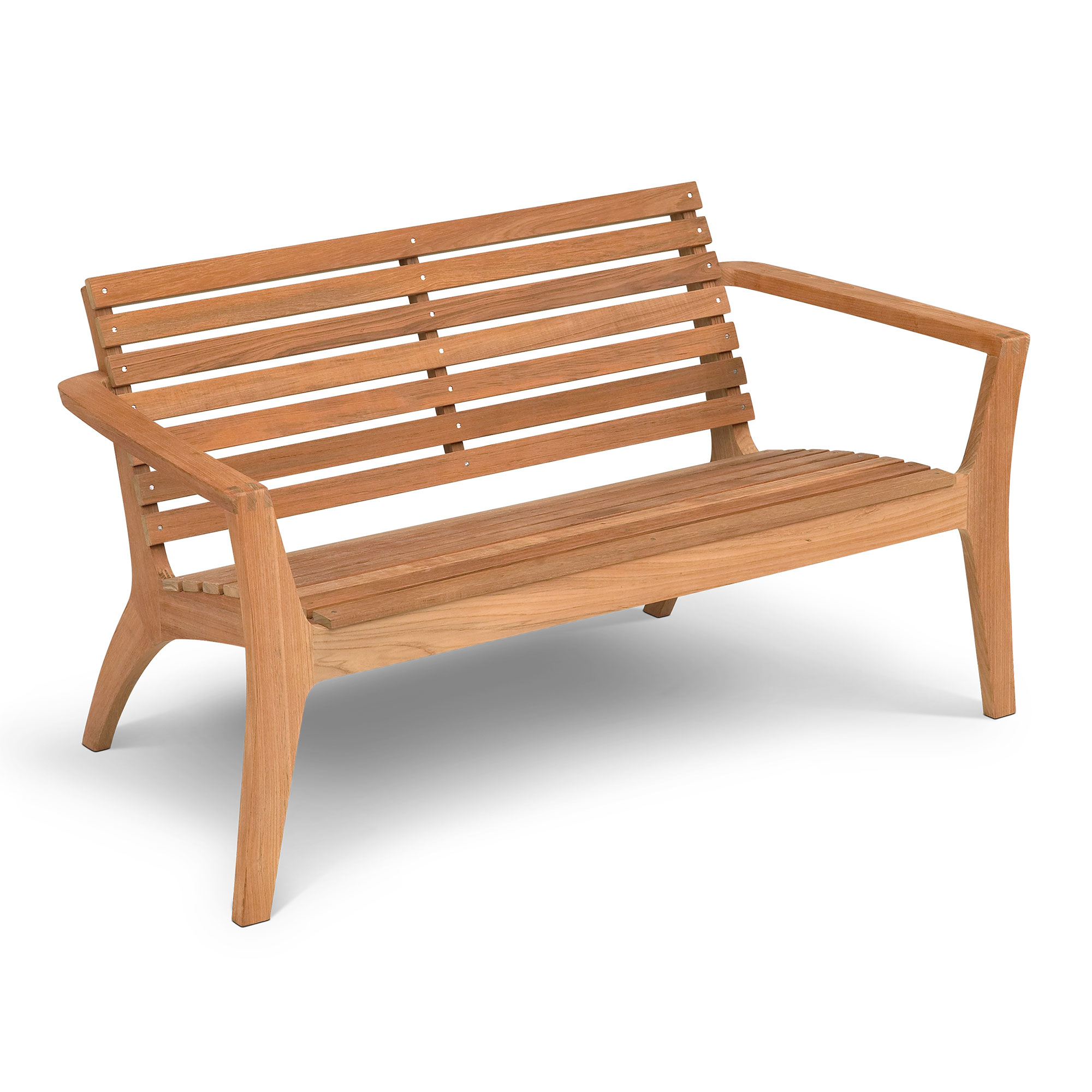 Regatta Lounge Bench, en elegant soffa i massiv teak formgiven av Hans Thyge för Skagerak. I serien regatta finns även fler möbler som passar för utomhusbruk.