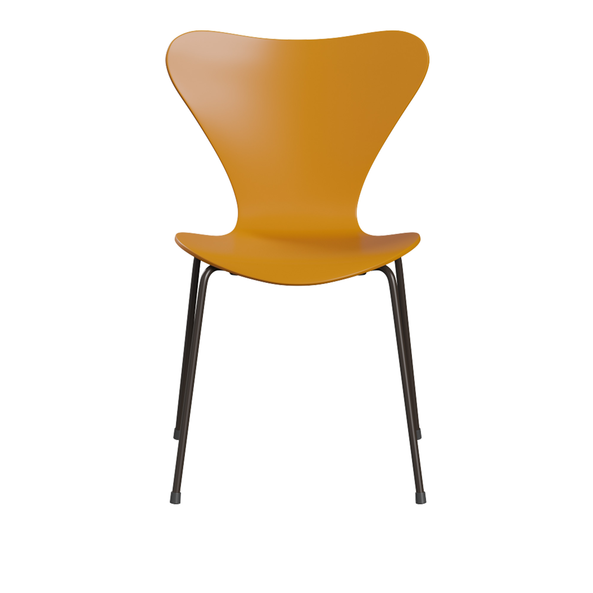 Fritz Hansen - Sjuan 3107 stol bokfanér stålstativ brun brons burnt yellow - Matstolar - Arne Jacobsen - Gul - Metall/Trä