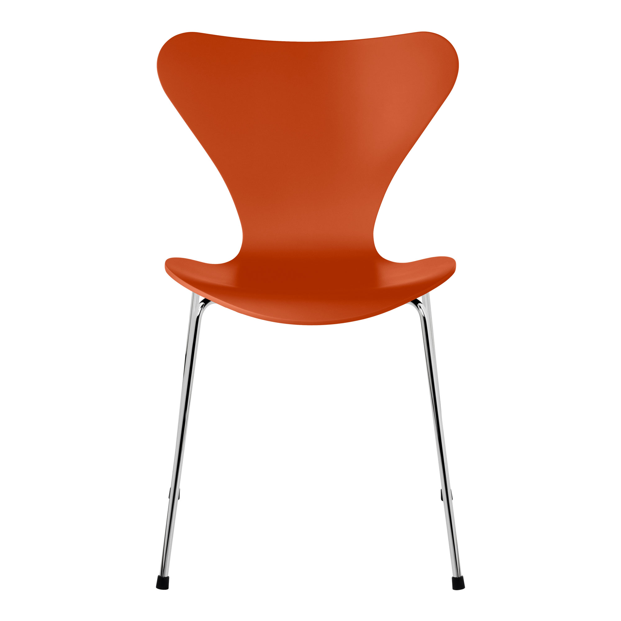 Fritz Hansen - Sjuan 3107 stol bokfanér stålstativ krom paradise orange - Matstolar - Arne Jacobsen - Orange - Metall/Trä