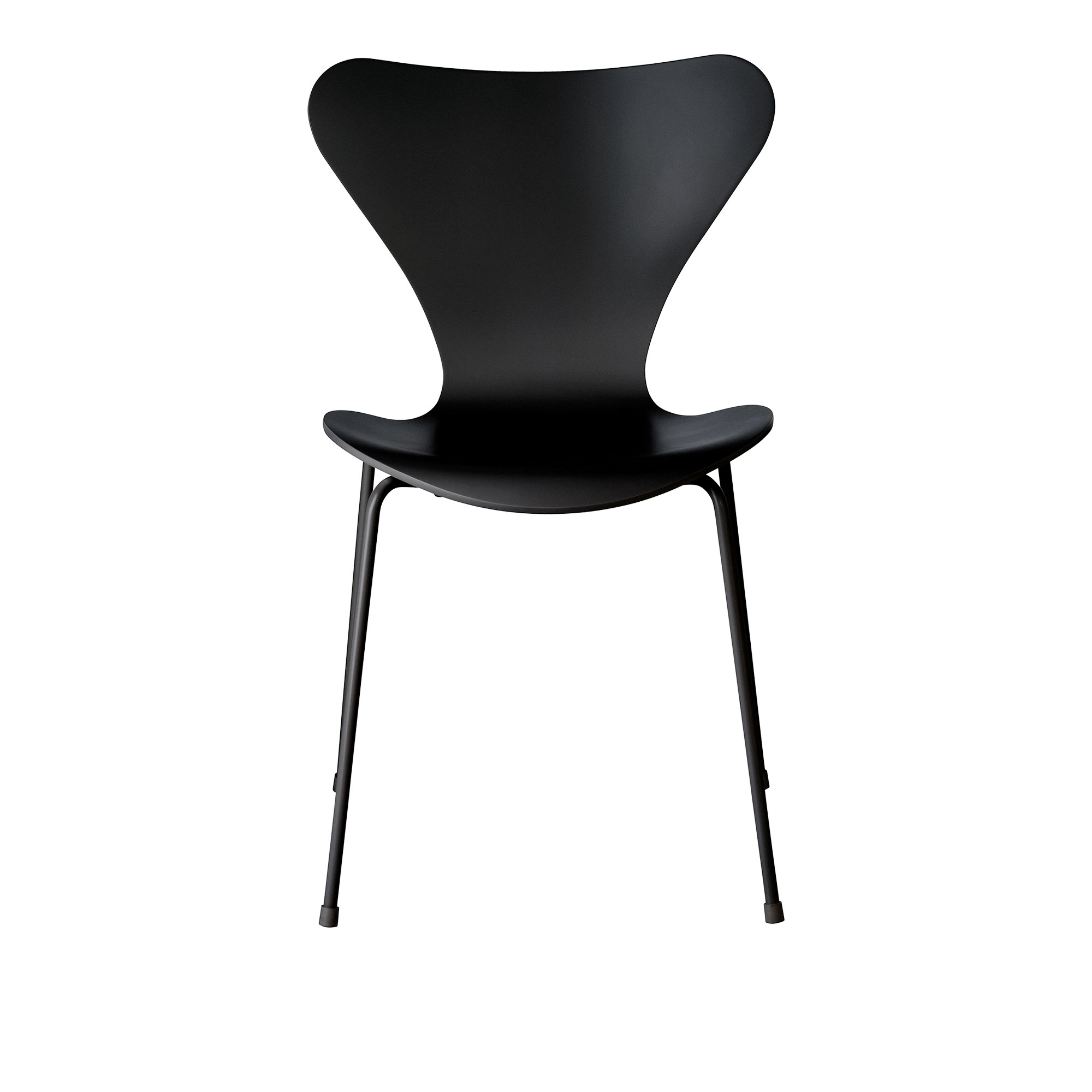 Fritz Hansen - Sjuan 3107 stol bokfanér stålstativ svart monochrome black - Matstolar - Arne Jacobsen - Svart - Trä