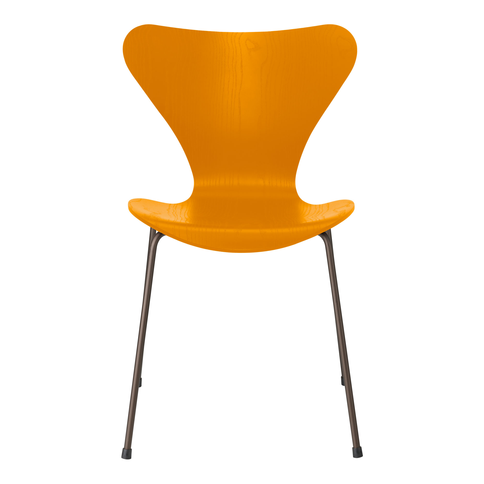 Fritz Hansen - Sjuan 3107 stol färgad askfanér stålstativ brun brons burnt yellow - Matstolar - Arne Jacobsen - Gul - Metall/Trä