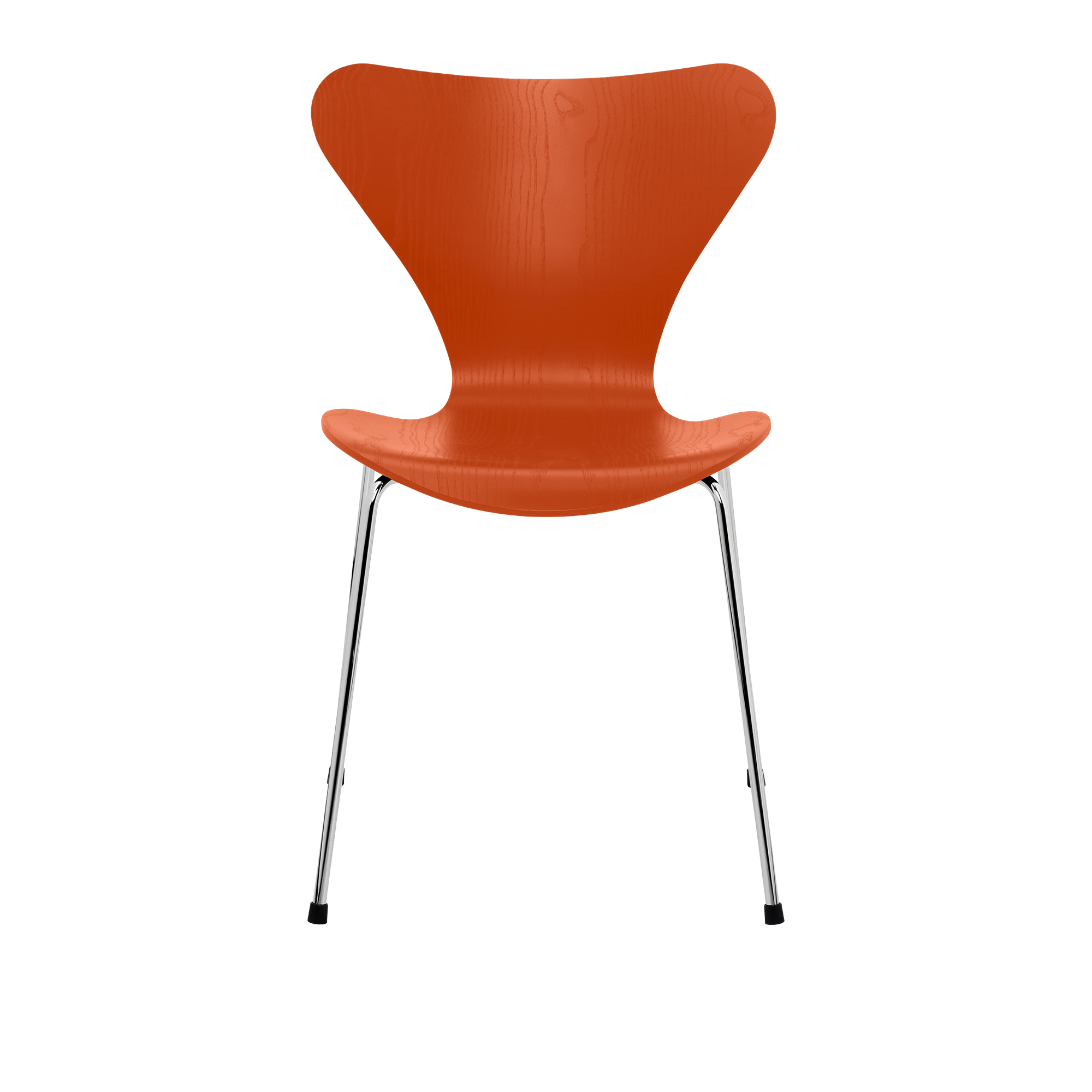 Fritz Hansen - Sjuan 3107 stol färgad askfanér stålstativ krom paradise orange - Matstolar - Arne Jacobsen - Orange - Metall/Trä