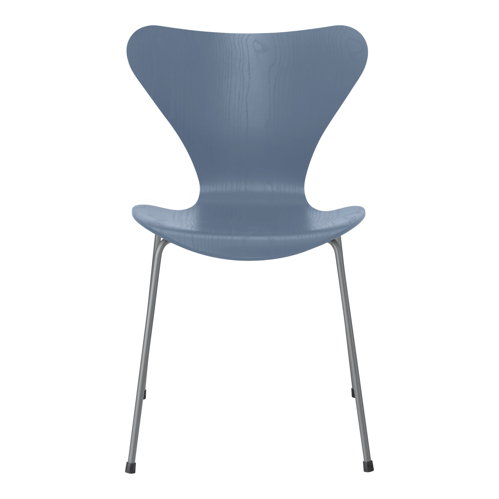 Fritz Hansen - Sjuan 3107 stol färgad askfanér stålstativ silver grå dusk blue - Matstolar - Arne Jacobsen - Blå - Metall/Trä