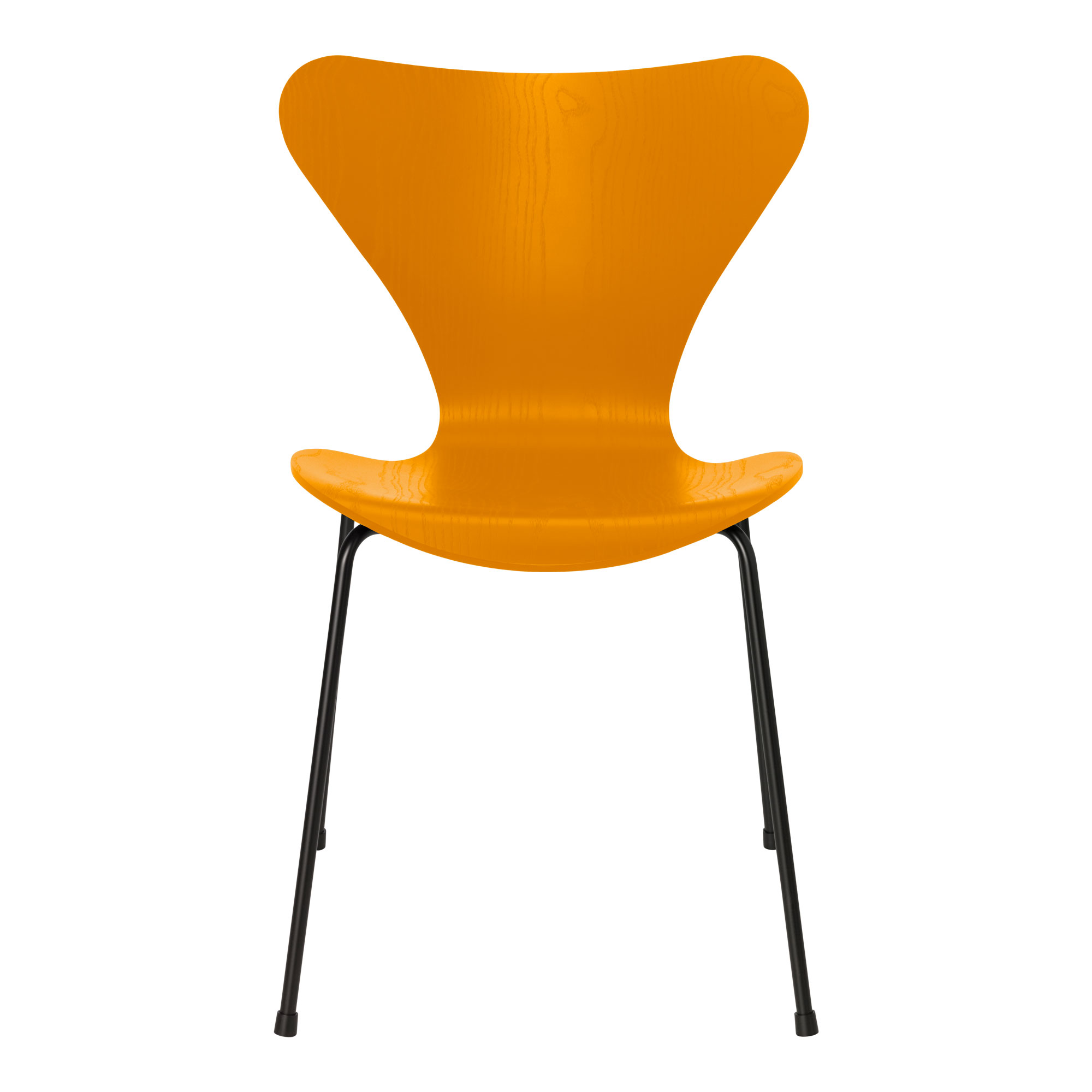 Fritz Hansen - Sjuan 3107 stol färgad askfanér stålstativ svart burnt yellow - Matstolar - Arne Jacobsen - Gul - Metall/Trä