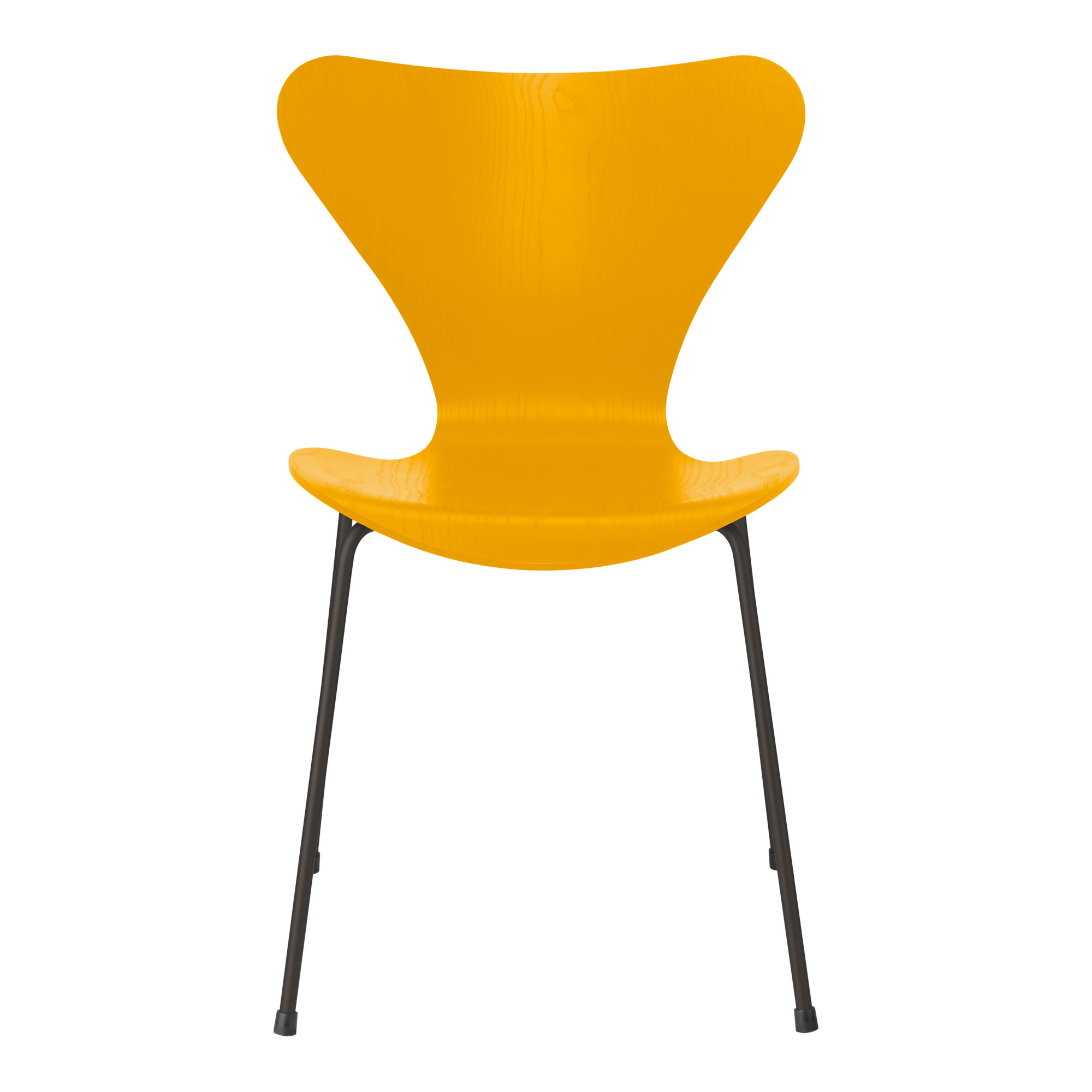 Fritz Hansen - Sjuan 3107 stol färgad askfanér stålstativ varm grafit true yellow - Matstolar - Arne Jacobsen - Gul - Metall/Trä