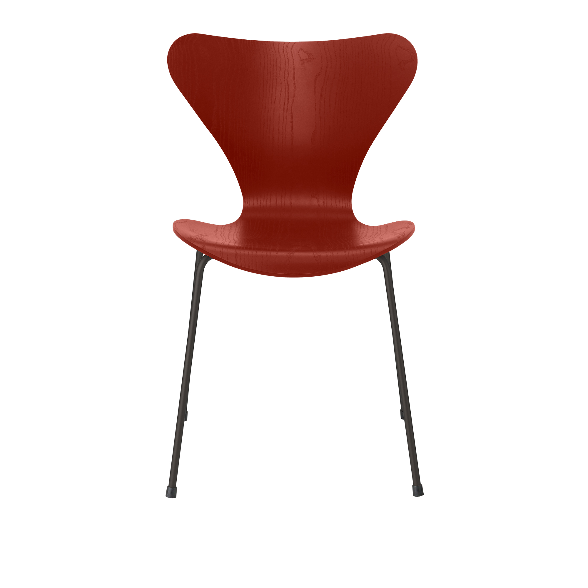 Fritz Hansen - Sjuan 3107 stol färgad askfanér stålstativ varm grafit venetian red - Matstolar - Arne Jacobsen - Röd - Metall/Trä