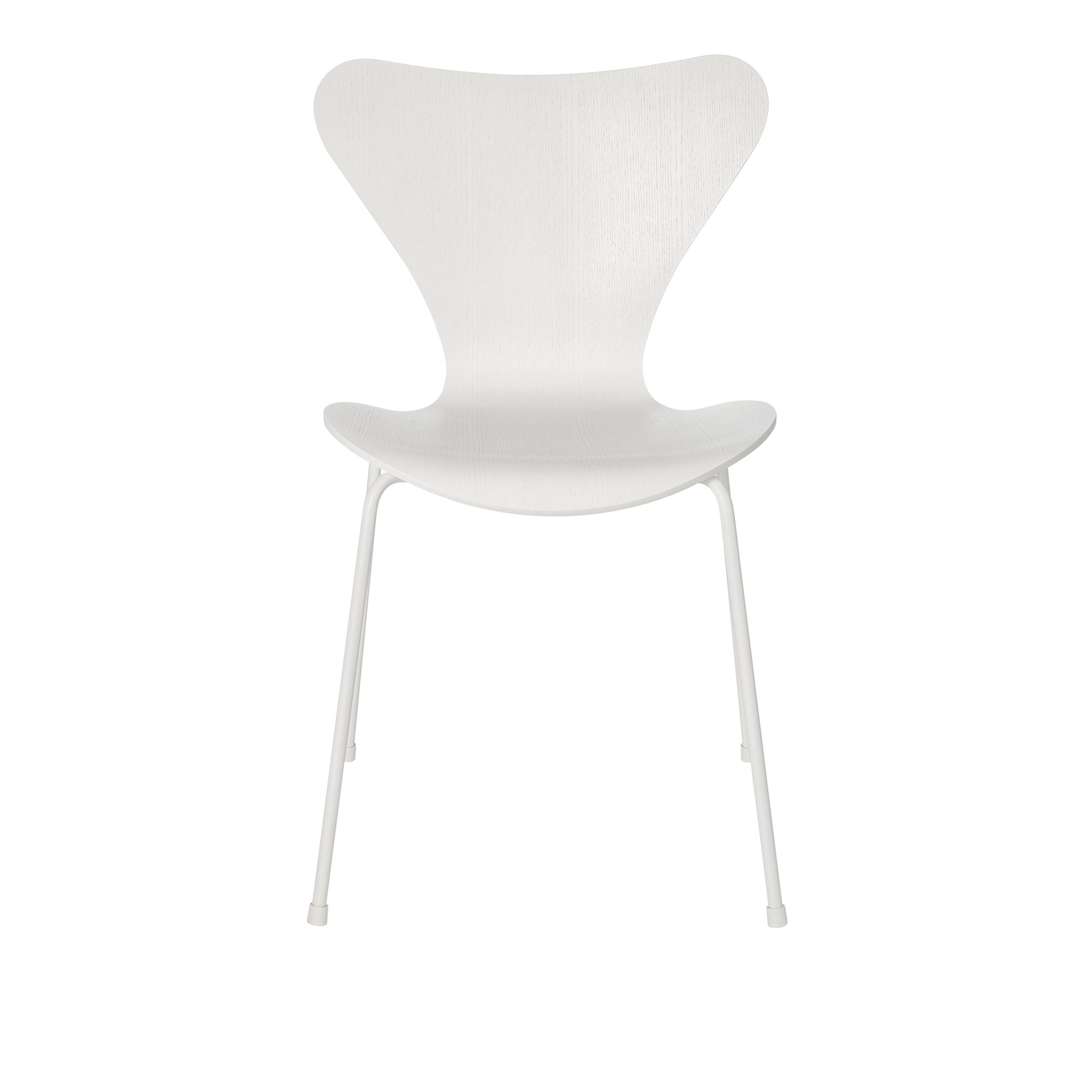 Fritz Hansen - Sjuan 3107 stol färgad askfanér stålstativ vit vit - Matstolar - Arne Jacobsen
