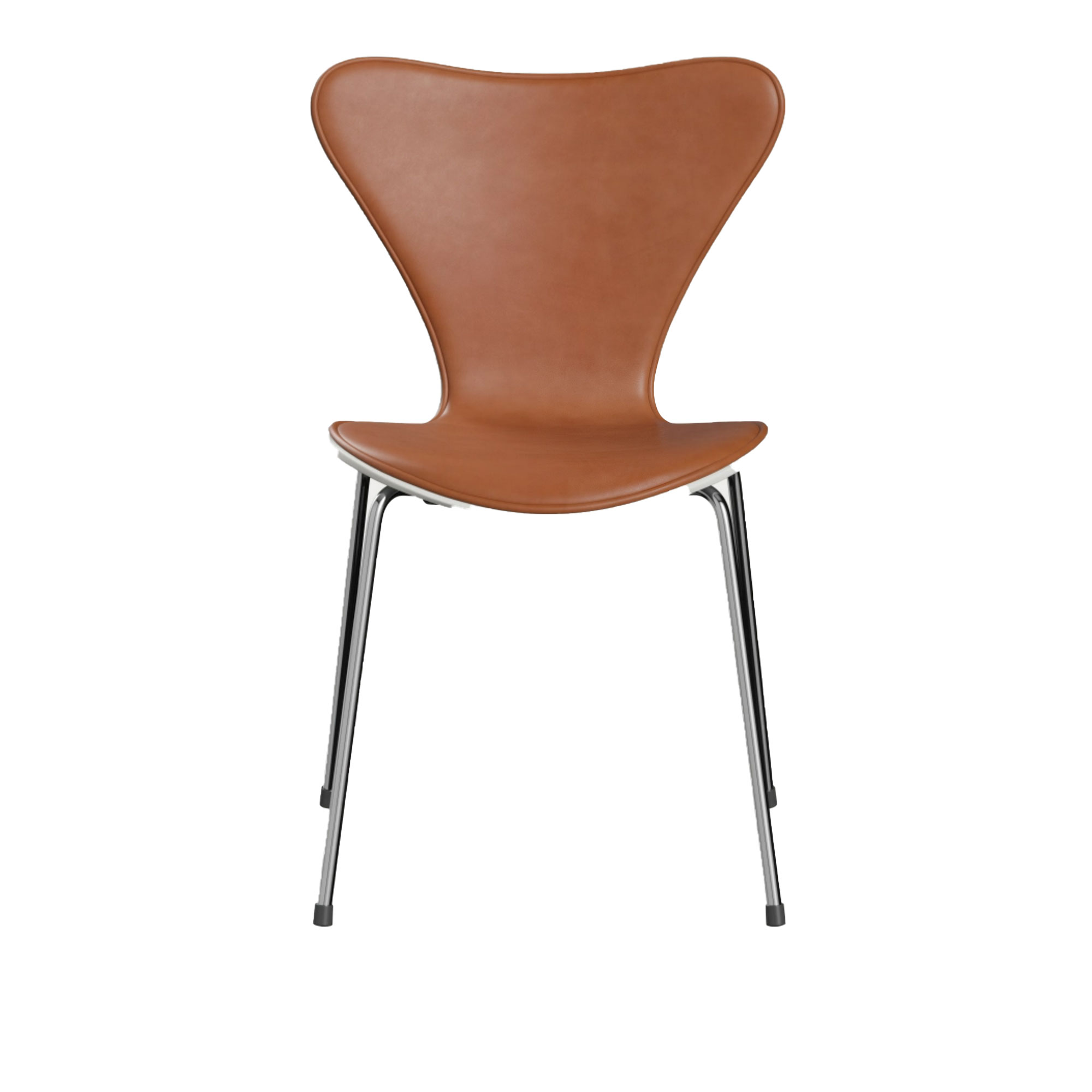 Fritz Hansen - Sjuan 3107 stol framsidesklädd läder stålstativ krom Grace Walnut/White - Matstolar - Arne Jacobsen - Brun - Läder/Metall/Trä