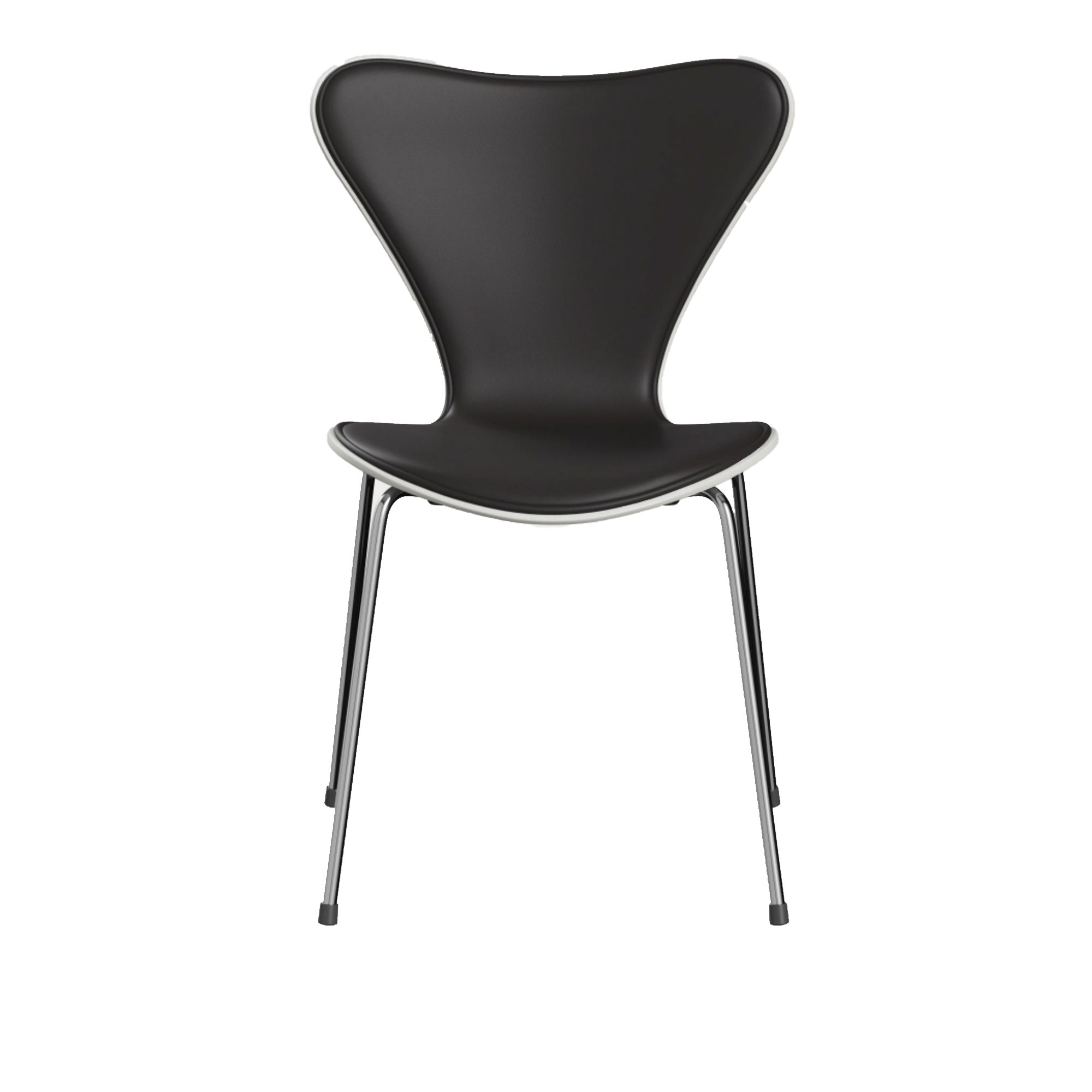 Fritz Hansen - Sjuan 3107 stol framsidesklädd läder stålstativ krom Soft Black Brown/White - Matstolar - Arne Jacobsen - Brun - Läder/Metall/Trä