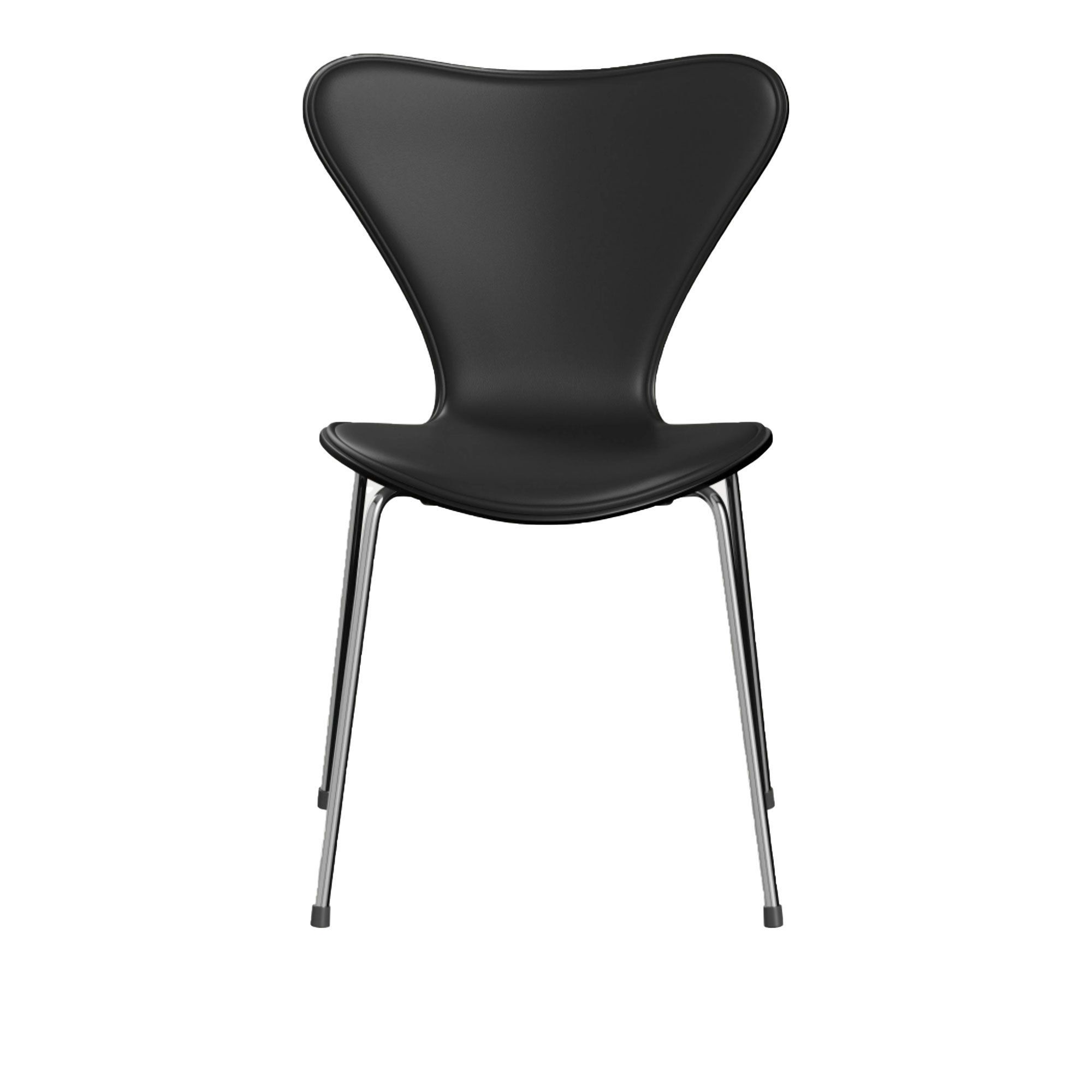 Fritz Hansen - Sjuan 3107 stol framsidesklädd läder stålstativ krom Soft Black/Black - Matstolar - Arne Jacobsen - Svart - Läder/Metall/Trä