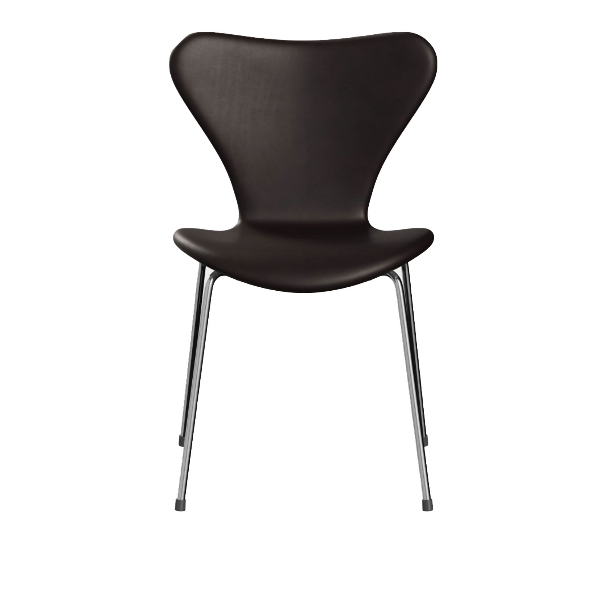 Fritz Hansen - Sjuan 3107 stol helklädd läder stålstativ krom grace dark brown - Matstolar - Arne Jacobsen - Brun - Läder/Metall/Trä