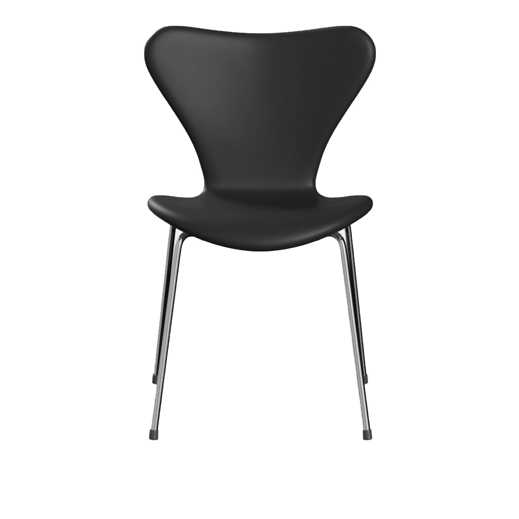 Fritz Hansen - Sjuan 3107 stol helklädd läder stålstativ krom soft black - Matstolar - Arne Jacobsen - Svart - Läder/Metall/Trä