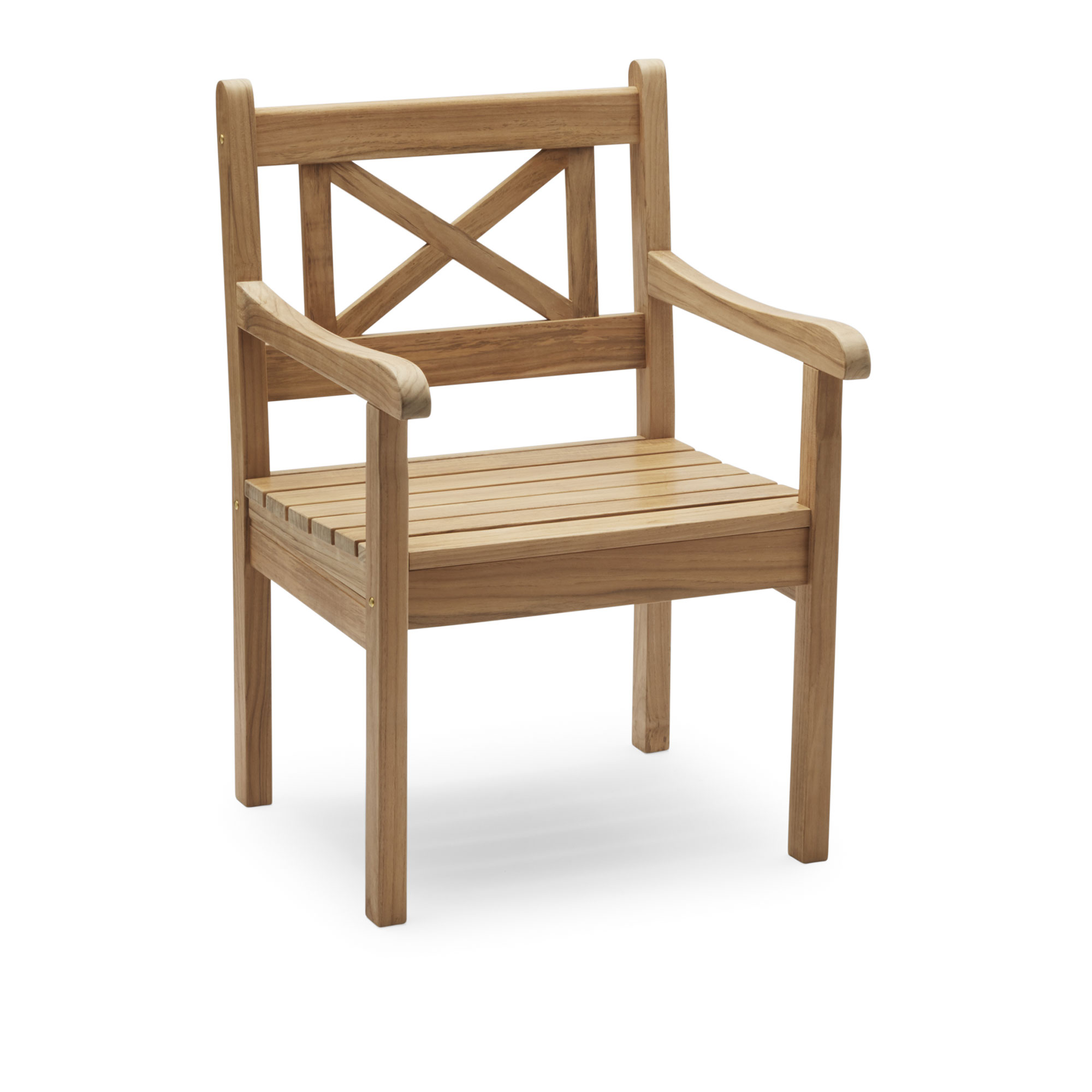 Skagen från Skagerak är en karmstol av klassiskt snitt med korsrygg tillverkad av massiv teak. Karmstolen finns även i vitlackerad FSC-certifierad eukalyptus.