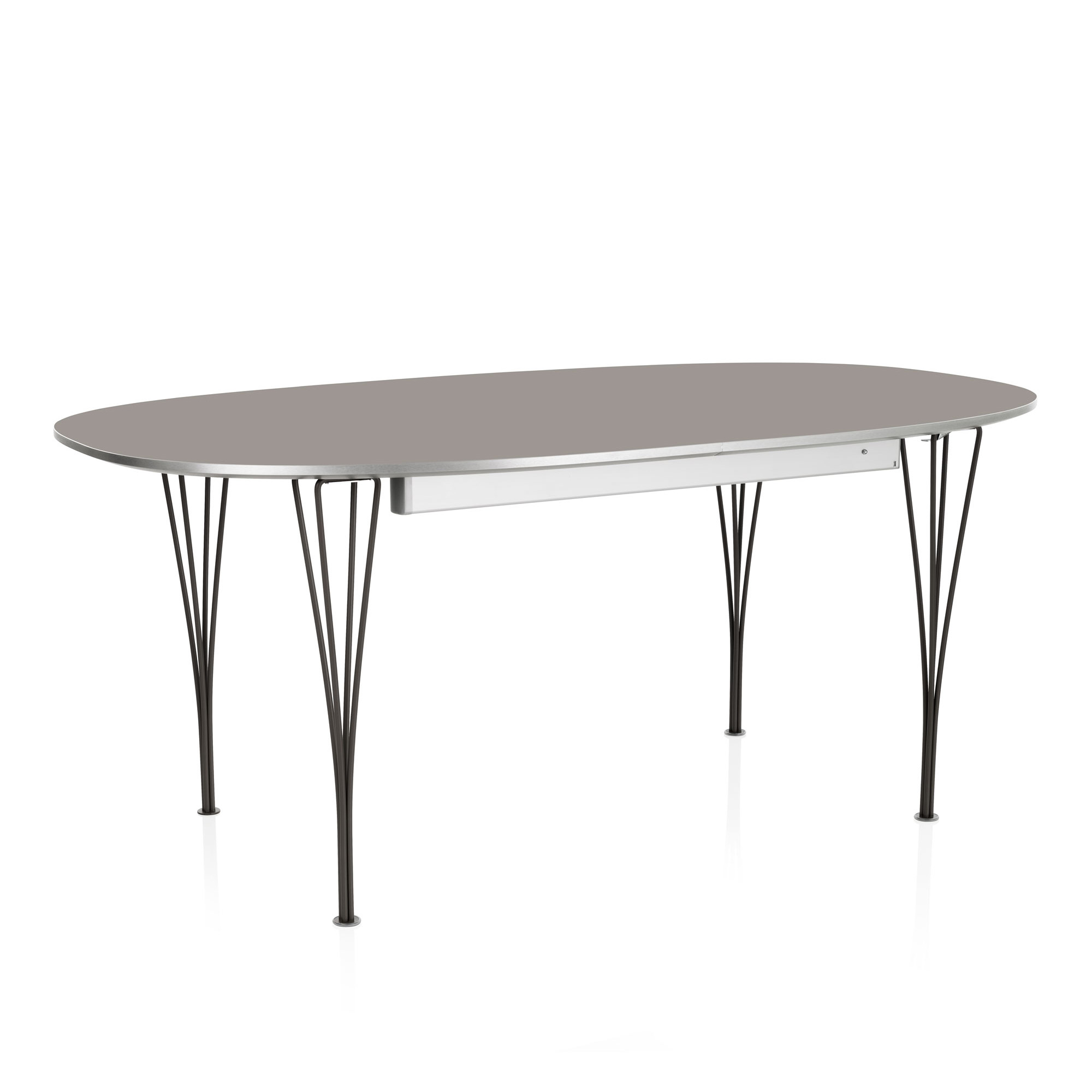 Fritz Hansen - Superellips Utdragbart B620 – 170–270x100 cm Grey Efeso/Black - Matbord - Arne Jacobsen,Bruno Mathsson,Piet Hein - Grå - Metall/Trä