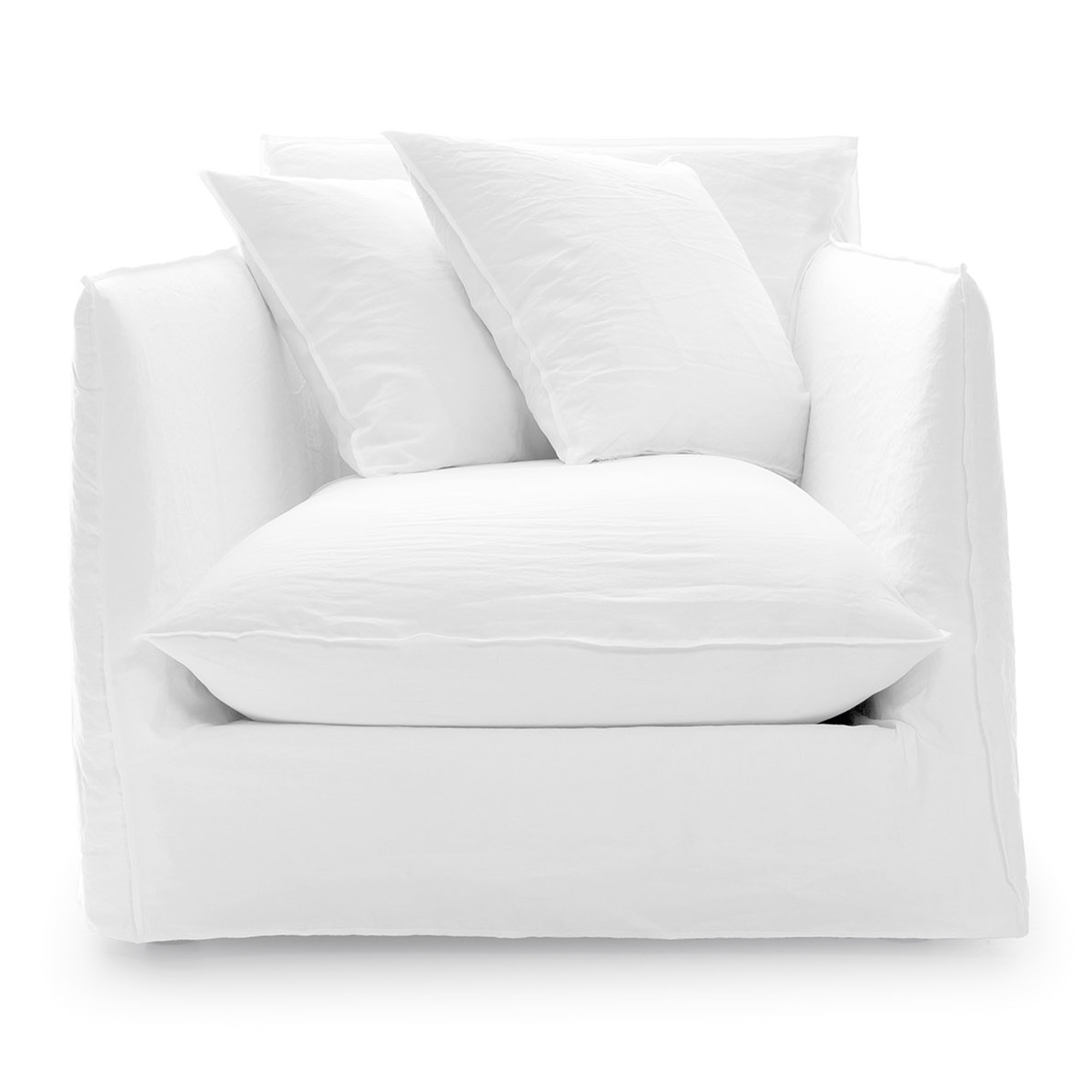 Gervasoni - Ghost 01 Armchair Lino Bianco - Fåtöljer - Paola Navone - Vit - Trä/Skum