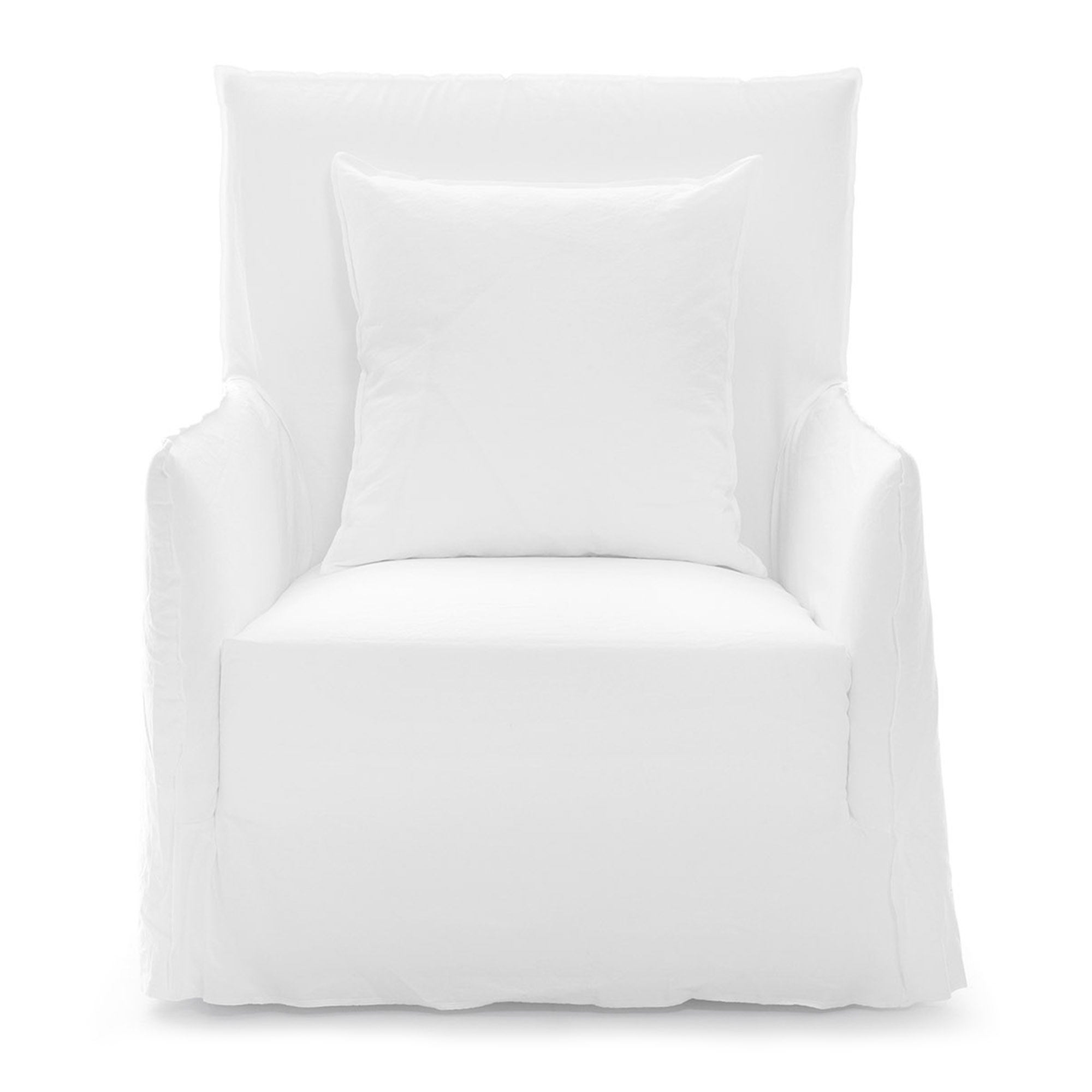 Gervasoni - Ghost 04 Armchair Lino Bianco - Fåtöljer - Paola Navone - Vit - Trä/Skum
