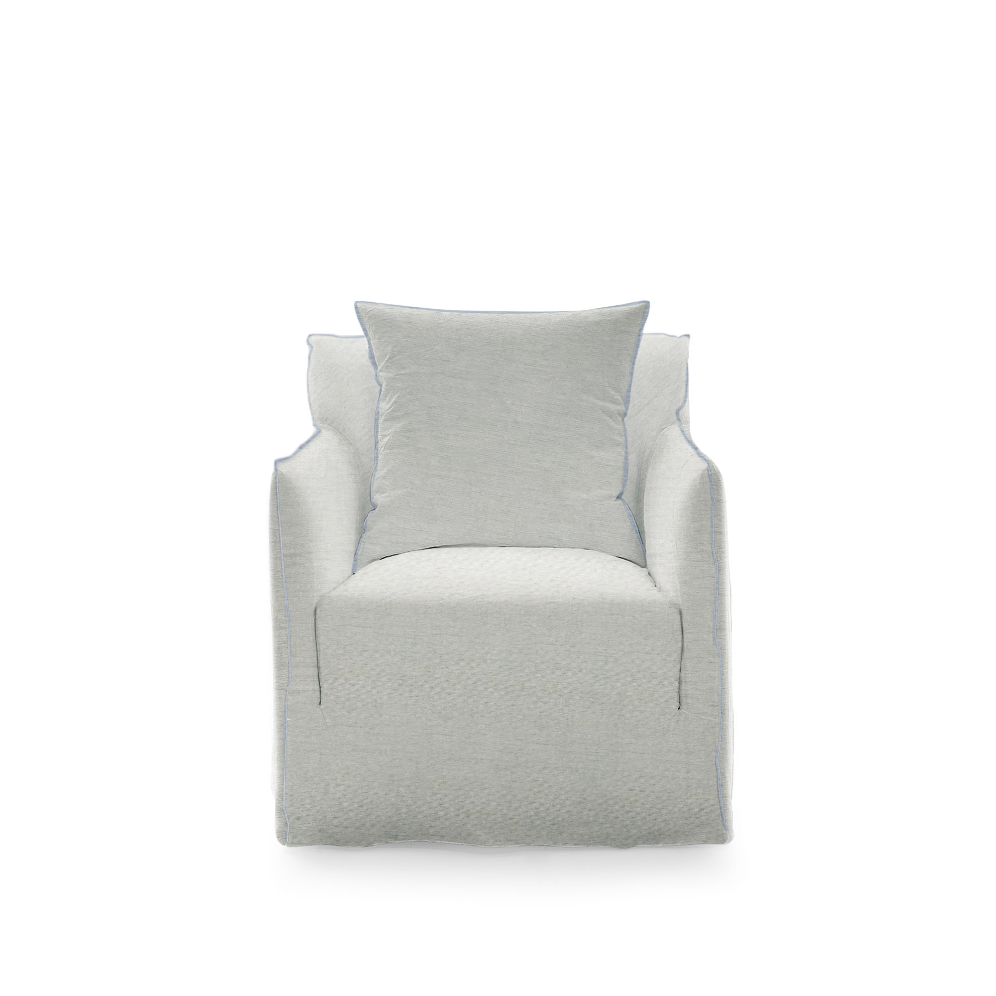 Armstolen Ghost 05, formgiven av Paola Navone för det renommerade italienska företaget Gervasoni, är en del av den välkända Ghost-serien. Denna stol utmärker sig med sin slanka och minimalistiska ram, klädd med ett lager av polyuretanskum och kompletterad med mjuka dunfyllda kuddar. Det distinkta draget hos Ghost-seriens fåtöljer är deras generöst tilltagna, avtagbara överdrag som framhäver dess design genom tydliga sömnadsdetaljer och erbjuder möjligheten att snabbt förändra dess utseende. Denna textilklädda armstol kan transformeras från sofistikerad till avkopplande med enkelhet och hastighet.