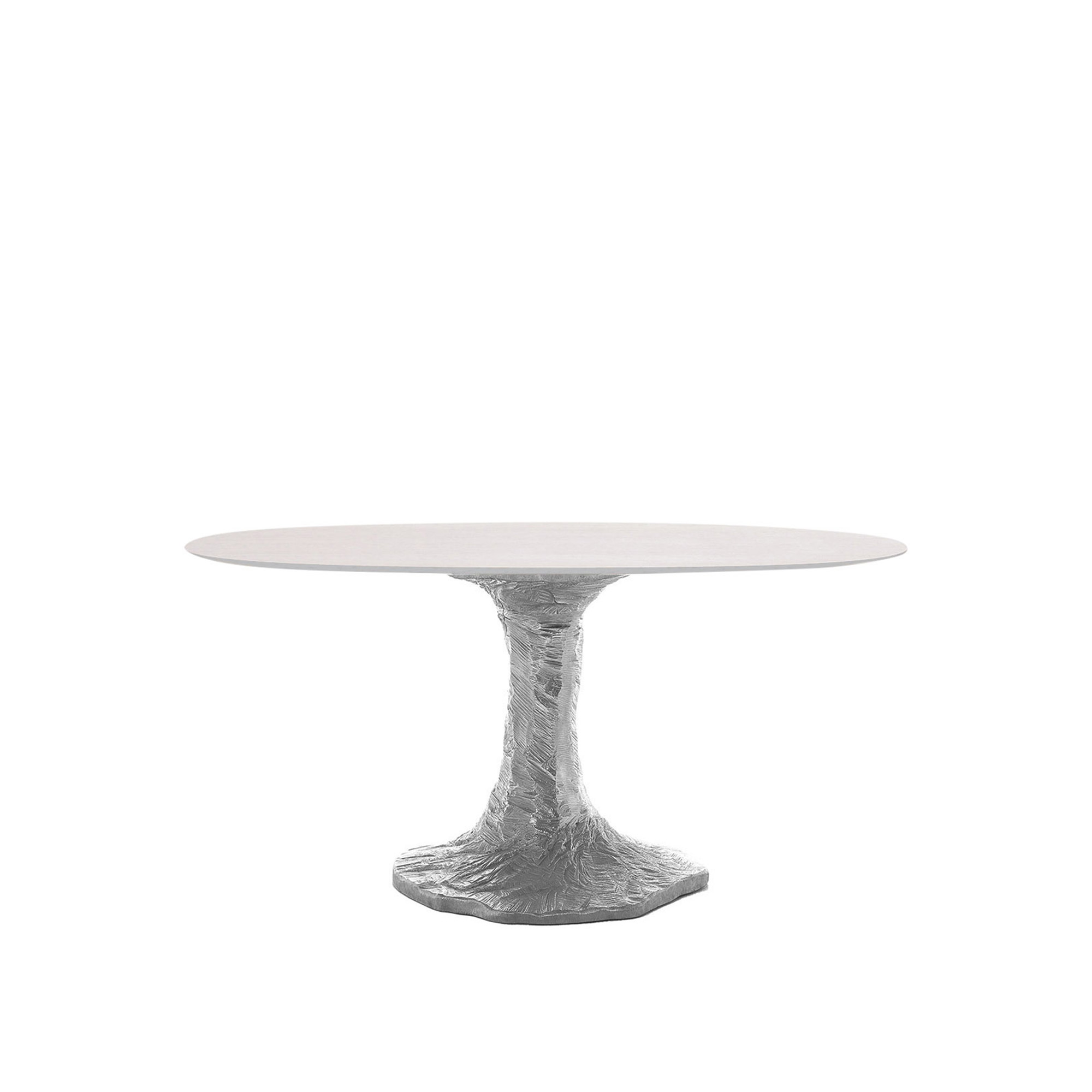Designikonen Next Table Round är skapad av den berömda designern Paola Navone för det anrika italienska märket Gervasoni. Denna bordsserie erbjuds i två dimensioner och utgör en del av Next-kollektionen. Dess distinkta pelarfot är konstruerad av aluminium och utstrålar en unik struktur och personlighet. Skivans designalternativ är många, inklusive vit carraramarmor och valnötsträ. Next Table Round framstår som ett sofistikerat matbord som garanterat blir en framträdande dekorativ detalj och en naturlig mötespunkt i varje hem. För de som föredrar en annan form finns bordet också som Next Table Oval, tillgängligt i två storlekar. Detta matbord harmoniserar utmärkt med andra möbelstycken från Gervasonis breda utbud.