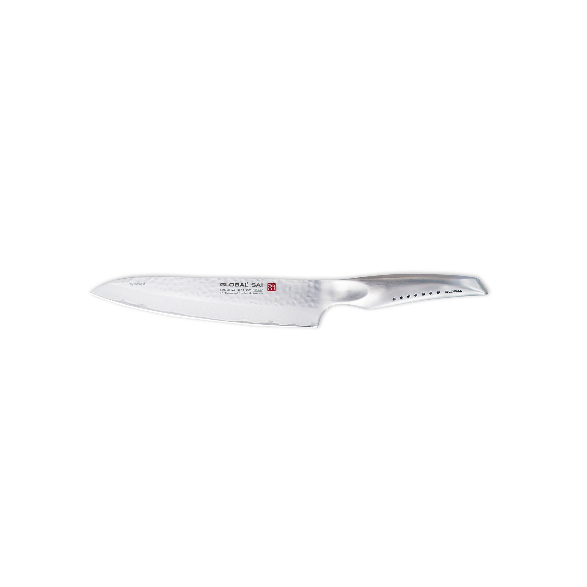 Global Sai SAI-S02 är en skalkniv på 10 cm från det erkända märket Global. Denna lilla kniv är perfekt för att skala och förbereda frukt och grönsaker. Dess kompakta och praktiska storlek gör den idealisk för att hantera små ingredienser där noggrannhet är nyckeln. Kniven är lika effektiv för arbete i handen, som när man skalar en lök, som den är för användning på en skärbräda. Med sin eleganta design är det en kniv som bör vara en självklarhet i varje kök. Global Sai-serien introducerades år 2012 och består av knivar med en distinkt hamrad finish som är estetiskt tilltalande. Dessa knivar behåller den högkvalitativa stålblandningen som är kännetecknande för Globals traditionella serie, men de har förbättrats med två ytterligare stållager som bidrar till en yta som är motståndskraftig mot rost och som ger en extremt skarp egg. Det hamrade mönstret på bladet innebär också att varje kniv är unik i sitt utförande.