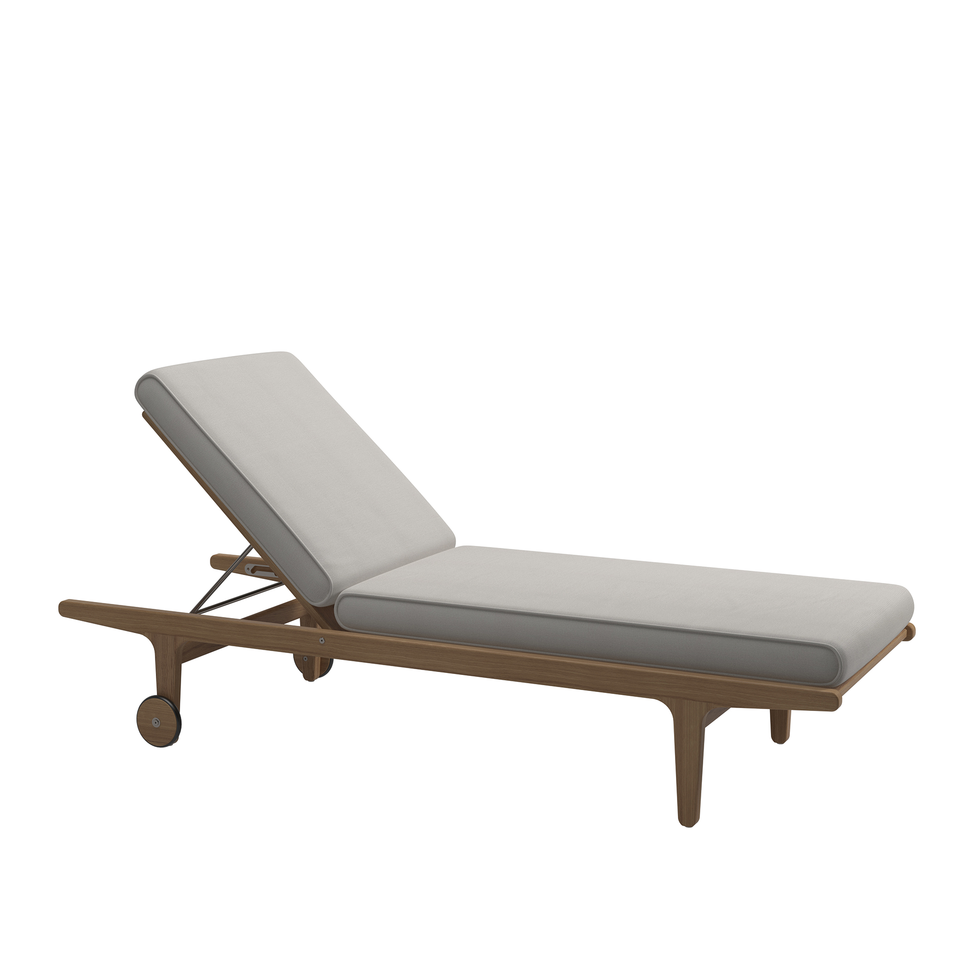 Designern Henrik Pedersen står bakom skapandet av solsängen Bay Lounger för det utomhusinriktade märket Gloster. Denna solsäng utgör en lyxig inredningsdetalj för uteplatsen eller vid poolkanten. Med sitt stomme i teakträ, ett signaturmaterial för Gloster, utstrålar Bay Lounger en varm och välkomnande charm. Ryggdelen är justerbar för olika komfortpositioner, och med hjälp av två monterade hjul kan sängen smidigt ompositioneras. En stilfull dyna, tillverkad i ett hållbart tyg avsett för utomhusbruk, fulländar solsängens design och erbjuder både lyx och komfort. Det finns ett urval av tyger i olika naturnära toner att välja mellan. Alla tygval är designade för att stöta bort vatten och torka snabbt. Om du vill beställa ett tyg som inte finns tillgängligt på vår webbplats, tveka inte att kontakta vår kundservice.