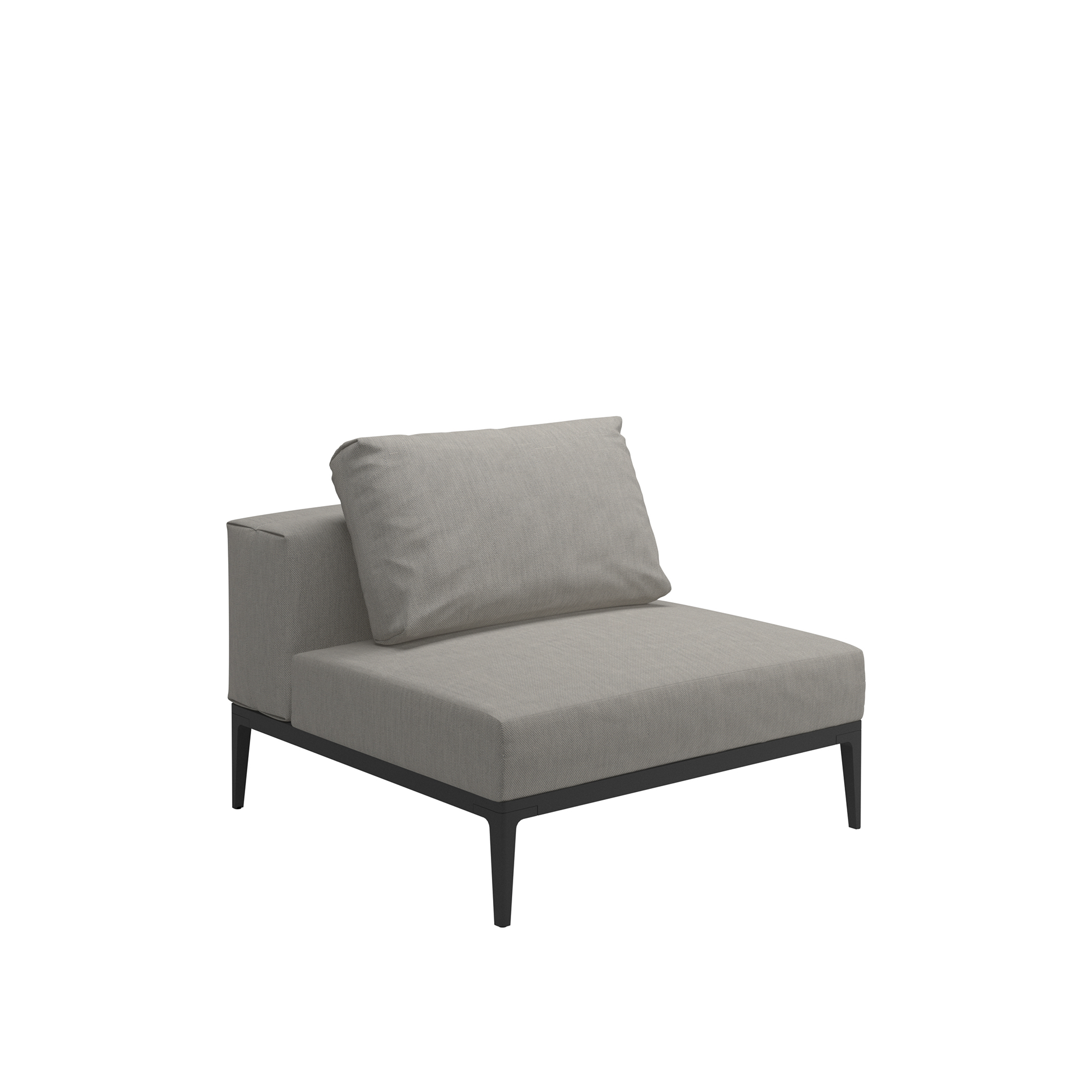 Designern Henrik Pedersen från Danmark står bakom modulsoffan Grid Small Center Unit, som är en del av Glosters sortiment. Denna möbel är mångsidig och kan användas enskilt som en bekväm stol eller kombineras med andra delar i Grid-kollektionen för att skapa en större sittgrupp. Dess eleganta och minimalistiska design kännetecknas av rena linjer och ett smäckert stöd av aluminium, tillgängligt i två färgalternativ. Med ett lågt ryggstöd och en mjuk dyna tillverkad av ett väderbeständigt tyg för utomhusbruk, erbjuder Grid Small Center Unit både komfort och hållbarhet. Tyget är av hög kvalitet, motståndskraftigt mot nötning och skyddat mot fukt och blekning från solen. Om du är intresserad av att beställa ett tyg som inte finns listat på vår webbplats, tveka inte att kontakta vår kundservice.