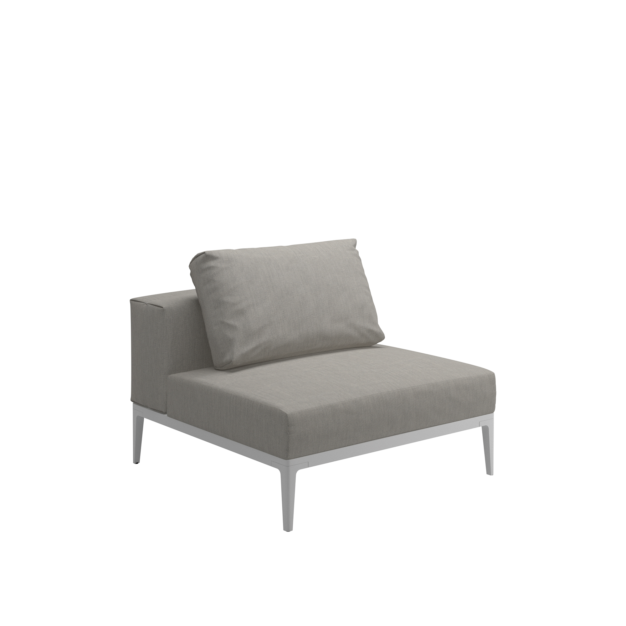 Designern Henrik Pedersen från Danmark står bakom modulsoffan Grid Small Center Unit, som är en del av Glosters sortiment. Denna möbel är mångsidig och kan användas enskilt som en bekväm stol eller kombineras med andra delar i Grid-kollektionen för att skapa en större sittgrupp. Dess eleganta och minimalistiska design kännetecknas av rena linjer och ett smäckert stöd av aluminium, tillgängligt i två färgalternativ. Med ett lågt ryggstöd och en mjuk dyna tillverkad av ett väderbeständigt tyg för utomhusbruk, erbjuder Grid Small Center Unit både komfort och hållbarhet. Tyget är av hög kvalitet, motståndskraftigt mot nötning och skyddat mot fukt och blekning från solen. Om du är intresserad av att beställa ett tyg som inte finns listat på vår webbplats, tveka inte att kontakta vår kundservice.