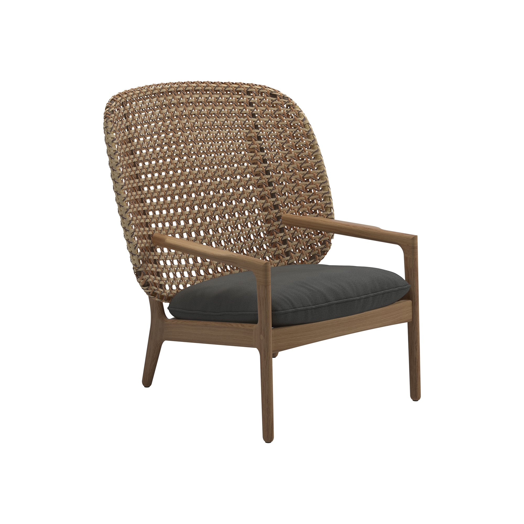 Gloster - Kay High Back Lounge Chair, Frame Harvest, Kat.B Blend Coal - Fåtöljer utomhus - Henrik Pedersen - Grå - Naturmaterial/Trä/Textilmaterial