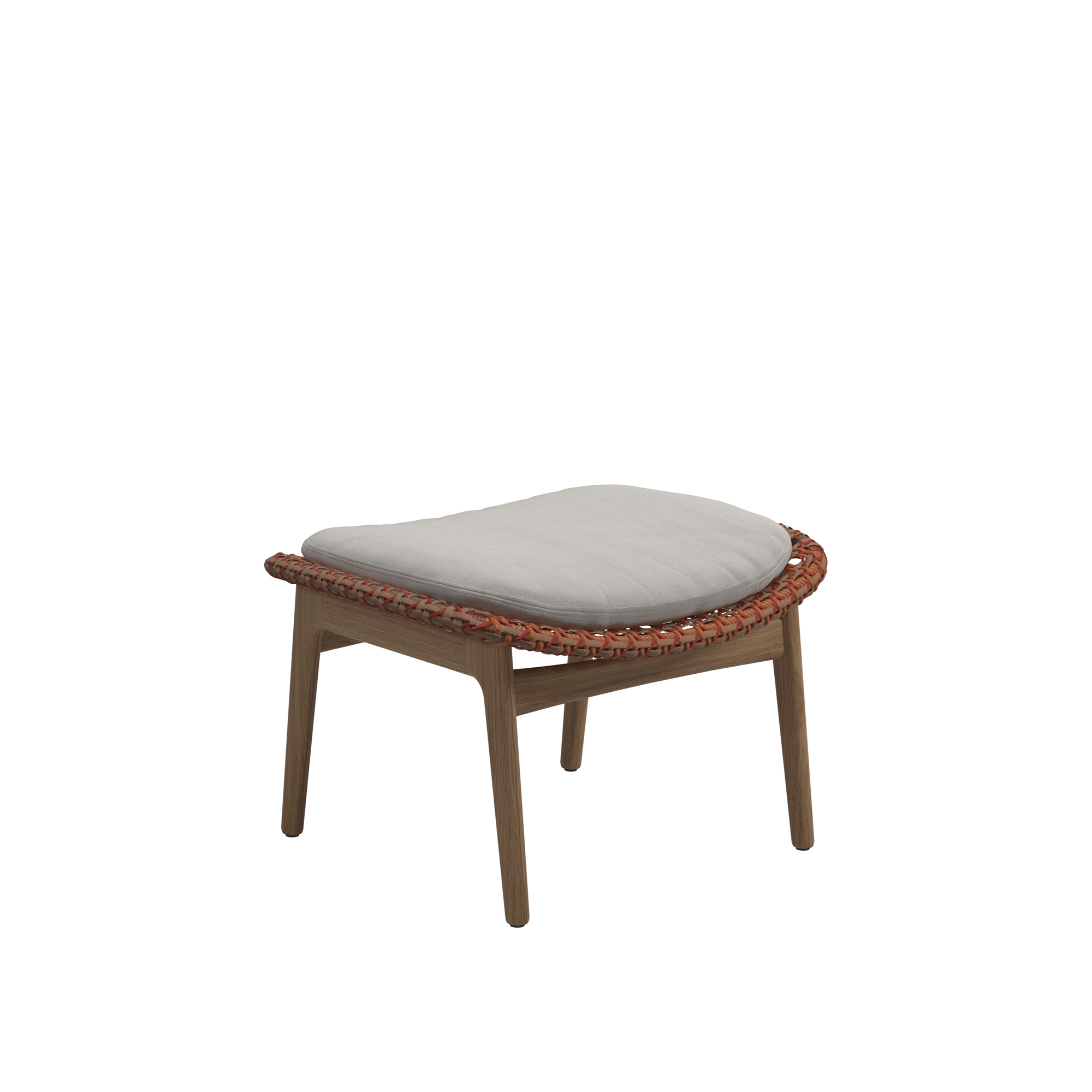 Henrik Pedersen har formgivit fotpallen Kay Ottoman för det erkända utomhusmärket Gloster. Denna pall är en del av Kay-kollektionen, som omfattar en rad olika möbler avsedda för utomhusbruk. Kay Ottoman kännetecknas av en elegant flätad sits tillverkad i ett material som tål väder och vind, och finns tillgänglig i tre olika nyanser. En mjuk dyna förhöjer komforten på sitsen. Dynans tyg, som är särskilt utvecklat för att användas utomhus, erbjuds i ett urval av olika utföranden. Fotstödets stomme är gjord av Glosters signaturteak, vilket ger en distinkt känsla till produkten. Kay Ottoman är perfekt för att skapa en enhetlig sittgrupp tillsammans med andra delar från samma serie, såsom fåtöljer eller soffor, för att skapa en inbjudande atmosfär på terrassen.