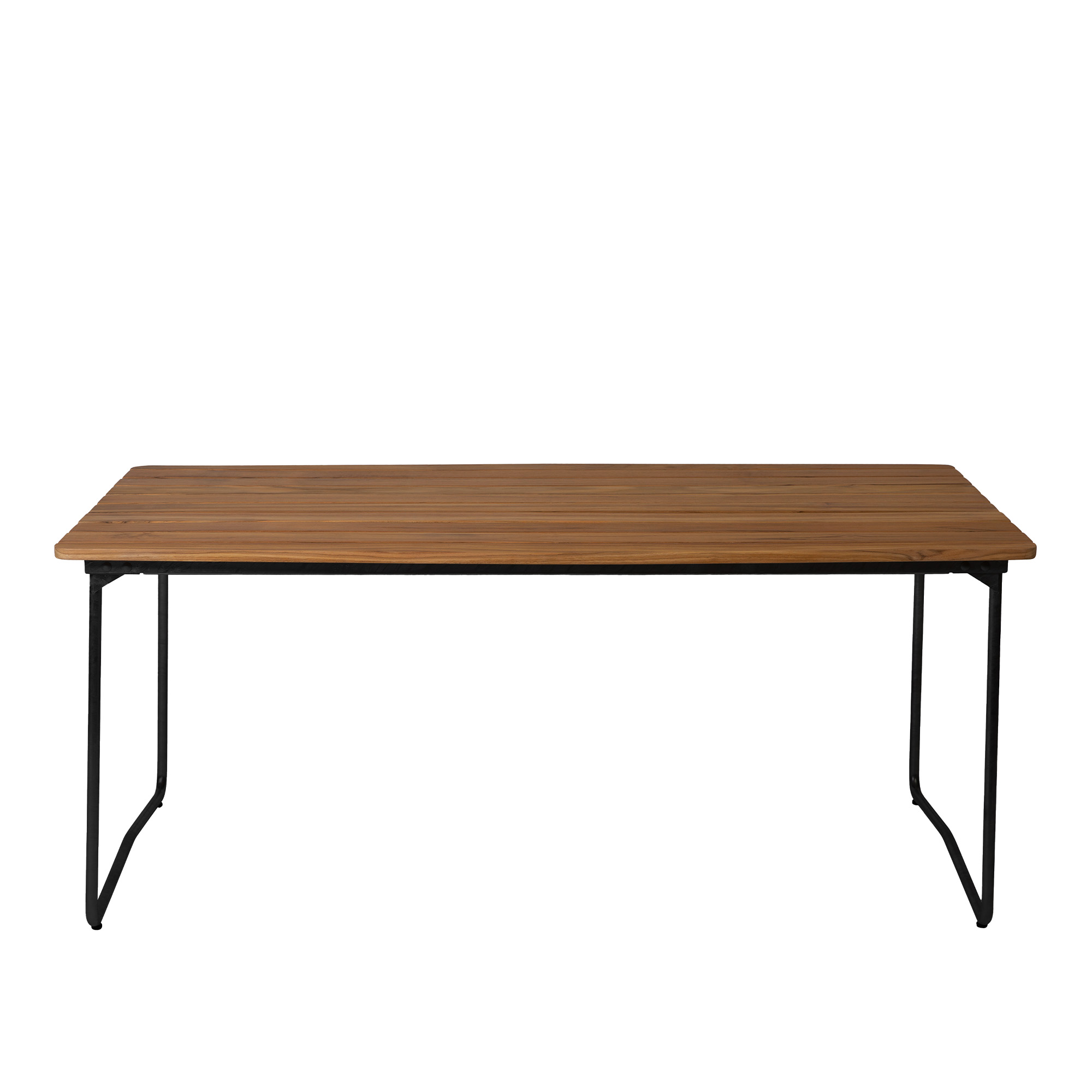 Grythyttan Stålmöbler - Bord B31 170x92 cm Svart stativ obehandlad teak - Matbord utomhus