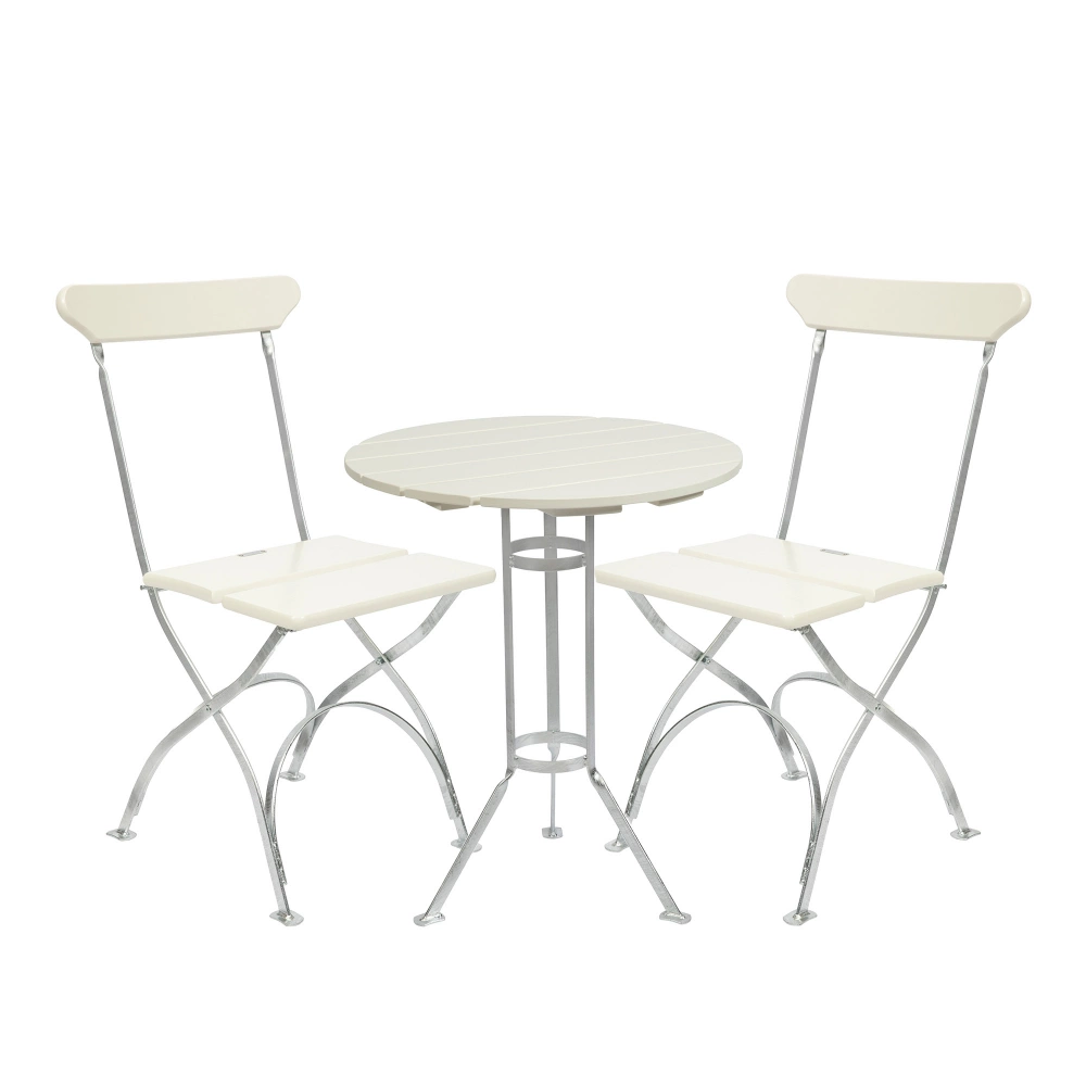 Grythyttan Stålmöbler - Bryggeriserien Matgrupp med Trefotsbord & 2 st Bryggeristolar Vitlackad Ek - Matgrupper utomhus