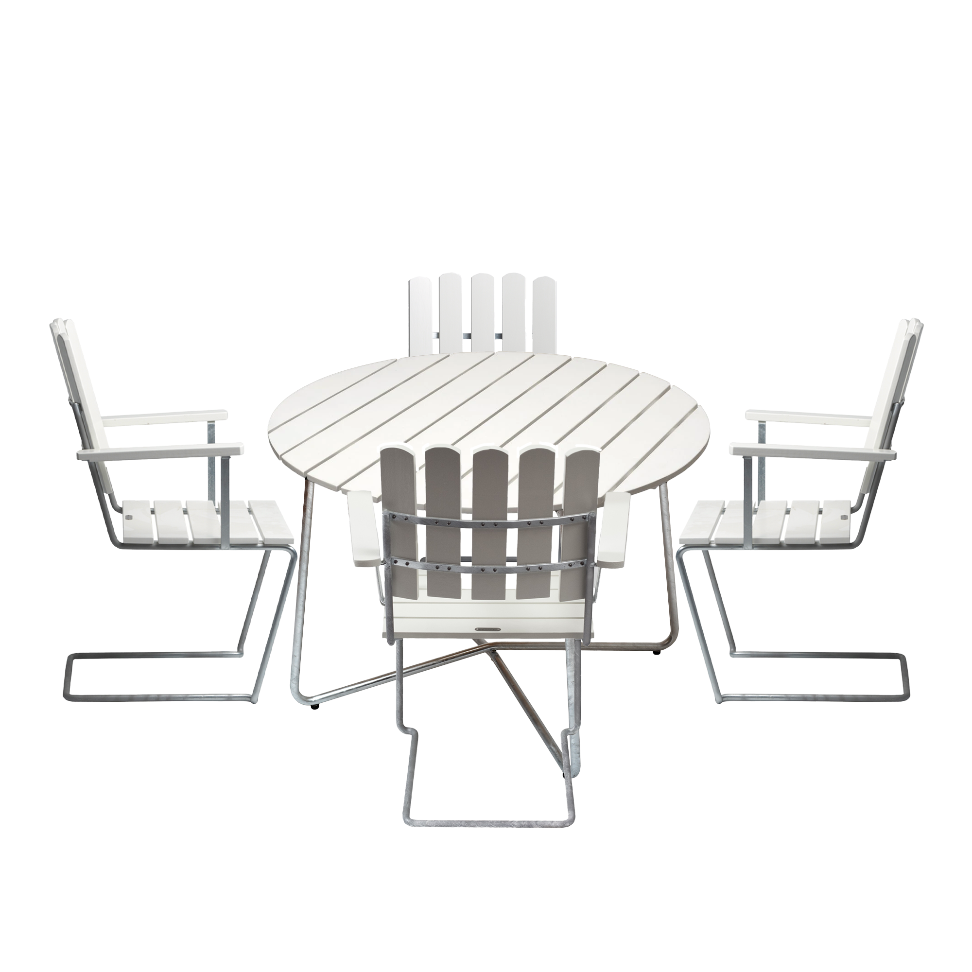 Grythyttan Stålmöbler - Klassikerserien Bord 9A & 4 st A2 Fåtöljer Vitlackerad ek - Matgrupper utomhus