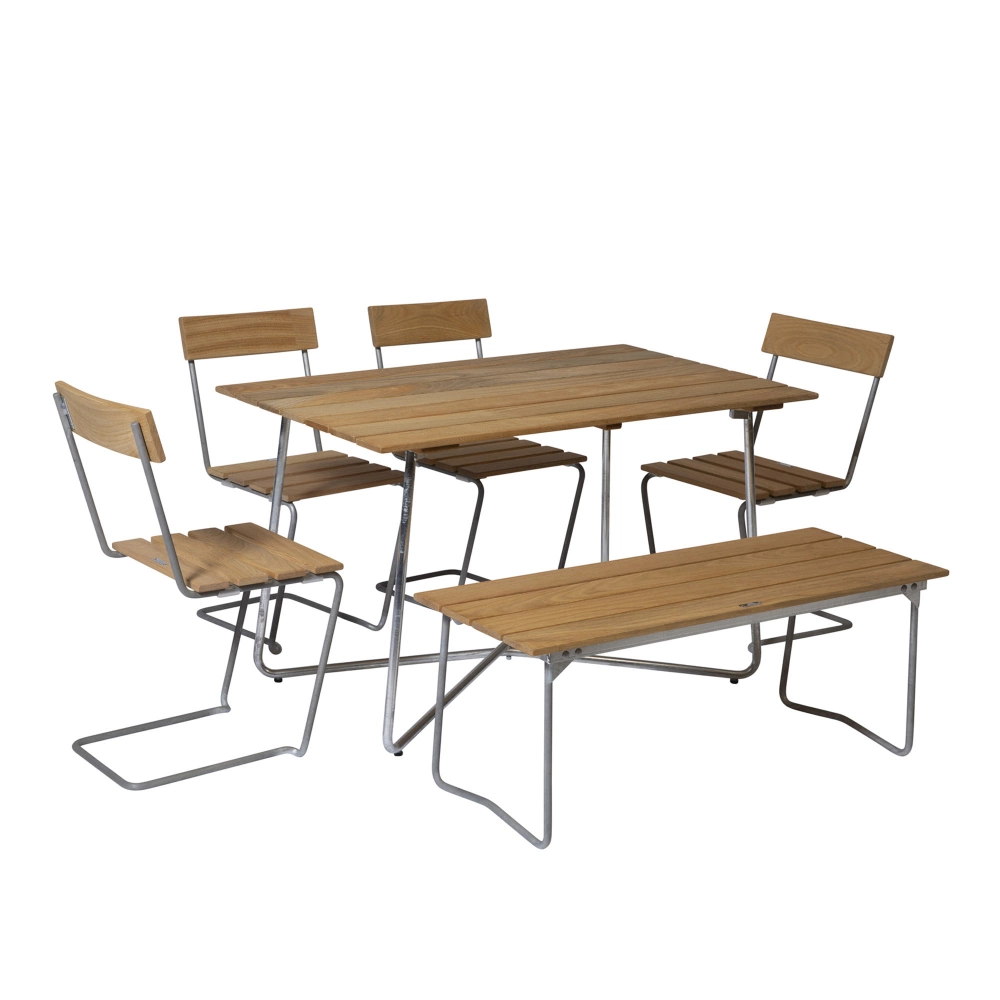 Grythyttan Stålmöbler - Klassikerserien Matgrupp Bord B25A, Bänk 8 & 4 st Stol 1 Oljad ek - Matgrupper utomhus