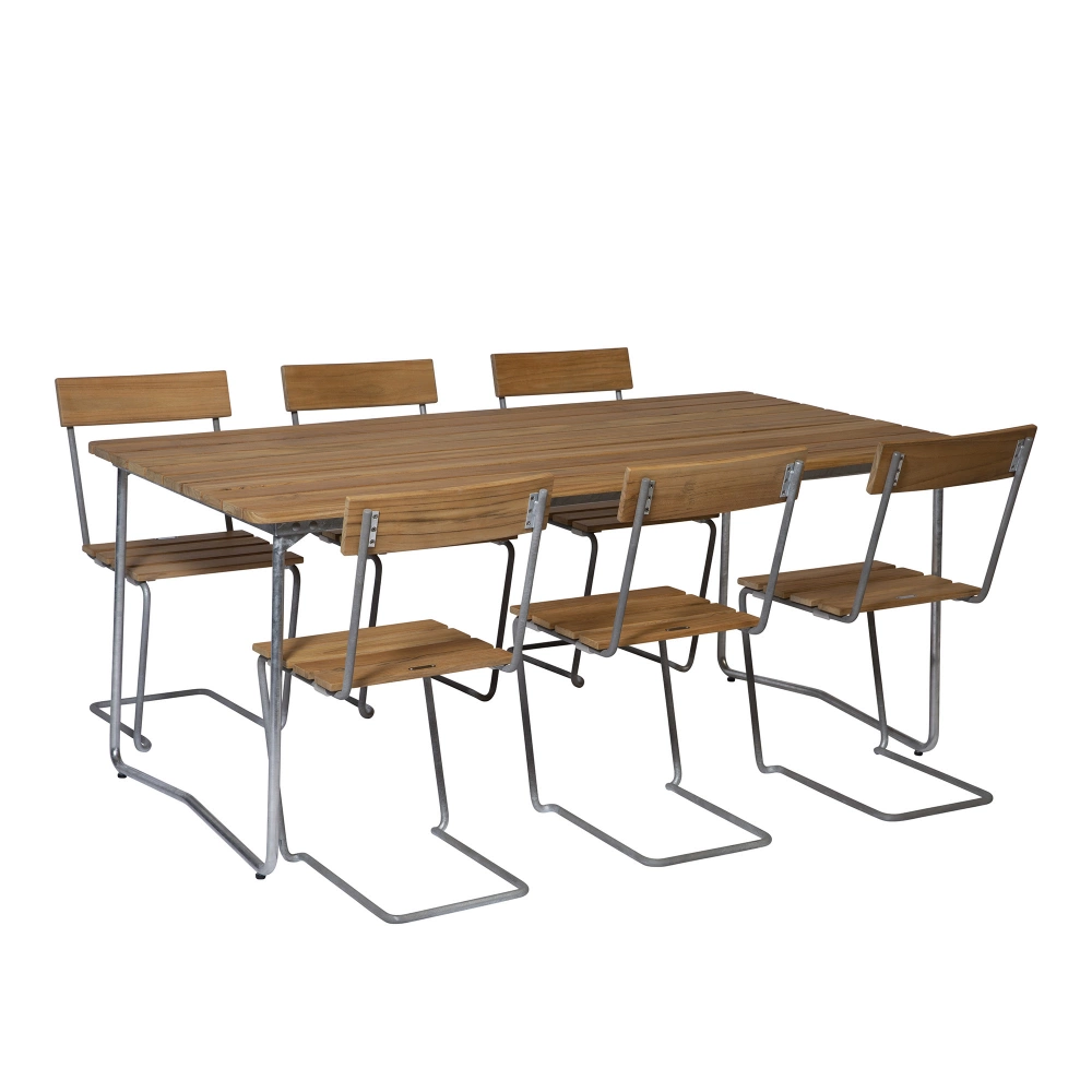 Grythyttan Stålmöbler - Klassikerserien Matgrupp Bord B31 & 6 st Stol 1 Teak - Matgrupper utomhus