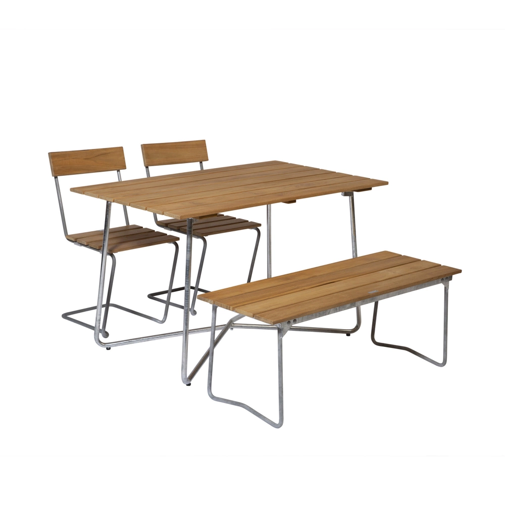 Grythyttan Stålmöbler - Klassikerserien Matgrupp med Bord B25A, Bänk 8 & 2 st Stol 1 Teak - Trädgårdsbänkar - Träfärgad